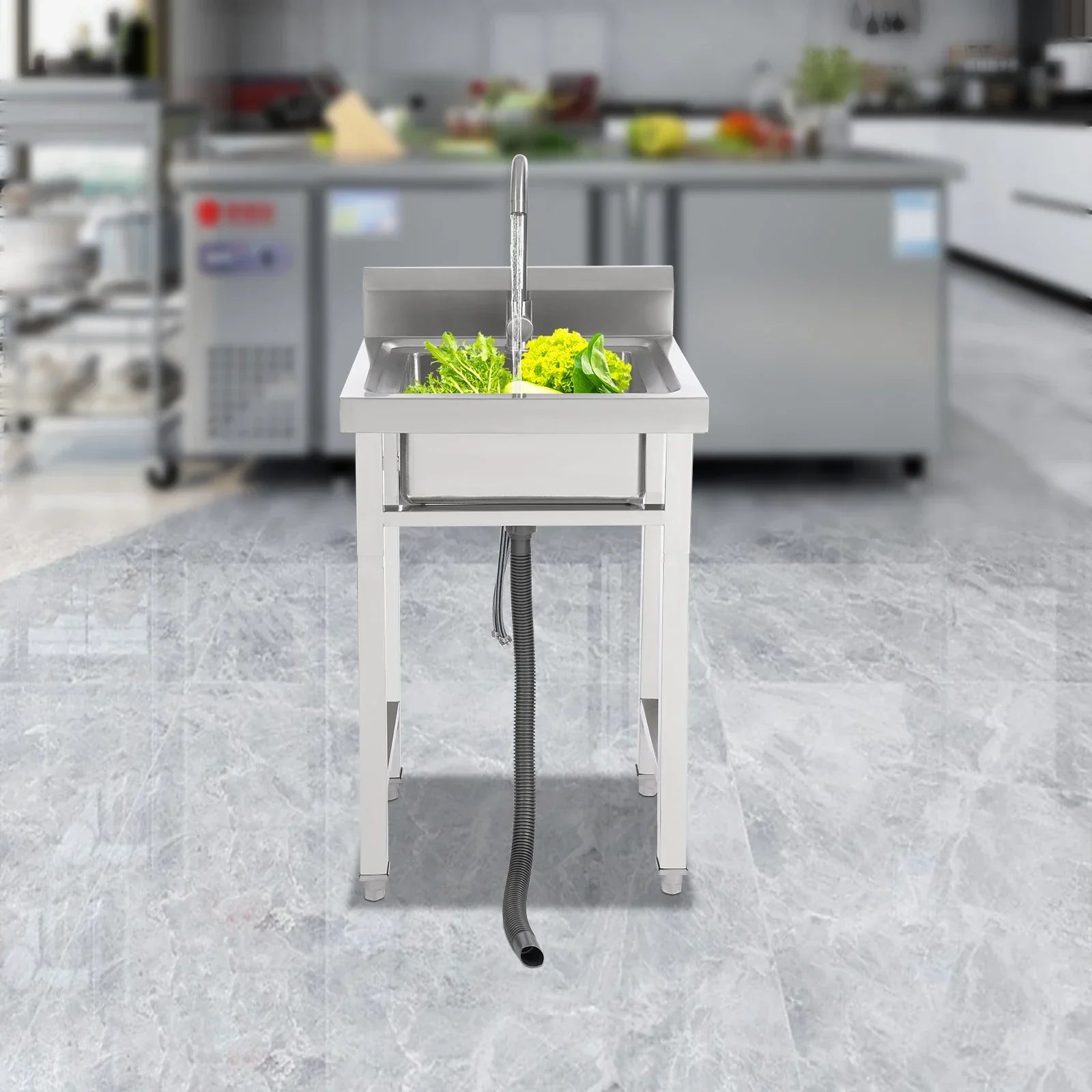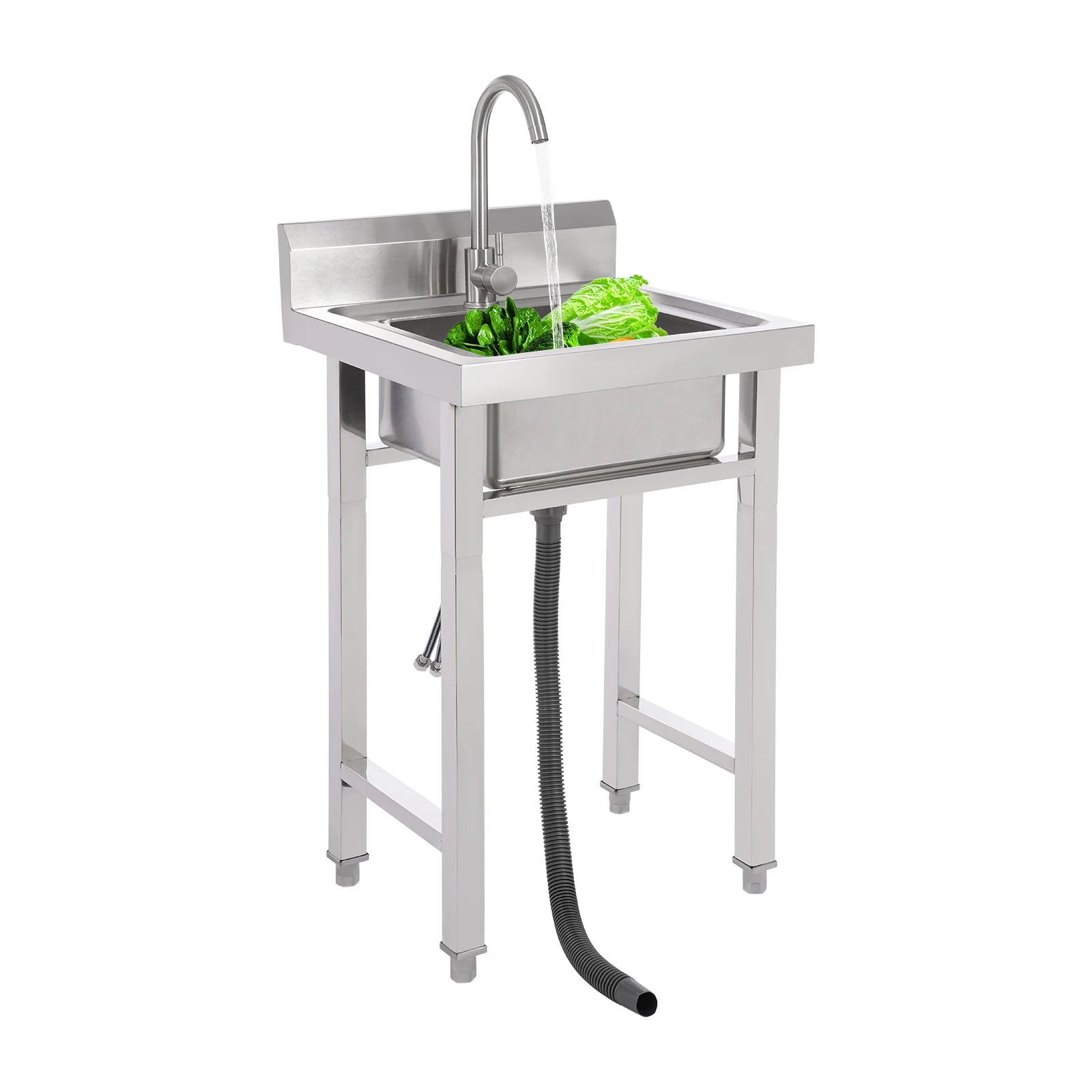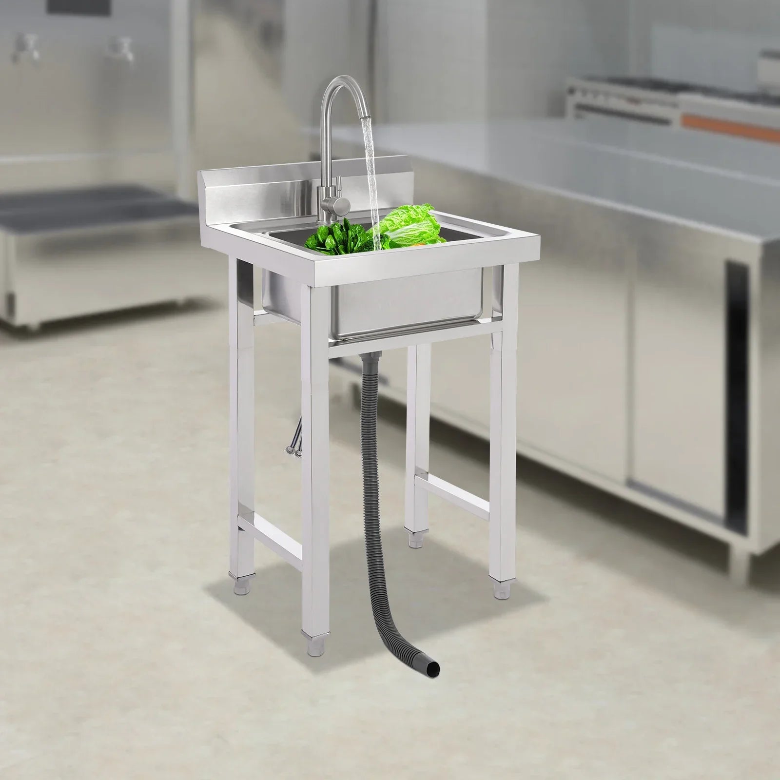Kommerzielle Waschbecken aus 201 Edelstahl, bodenstehendes kommerzielles Waschbecken für Küchen, Cafés, Bars und Milchteeladen