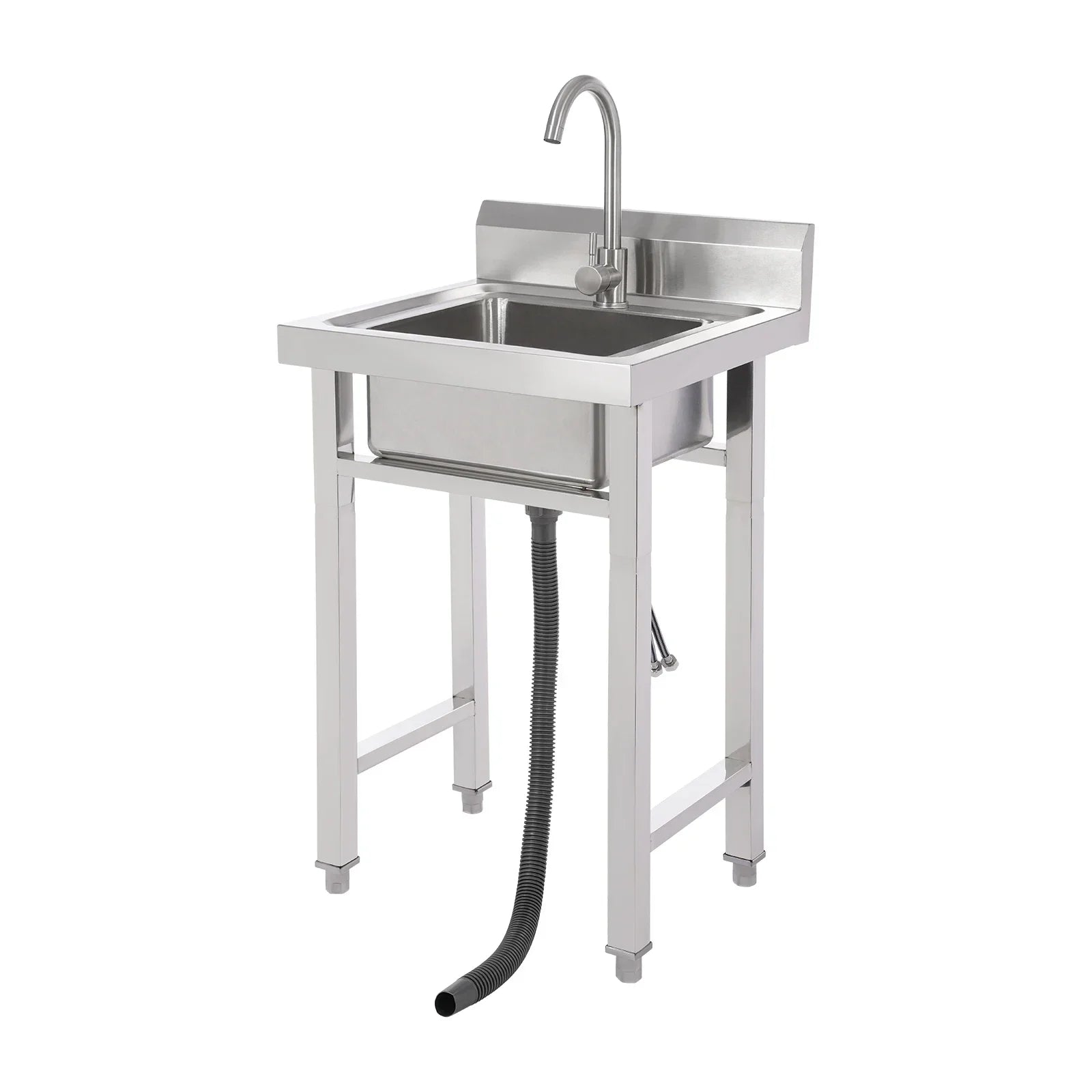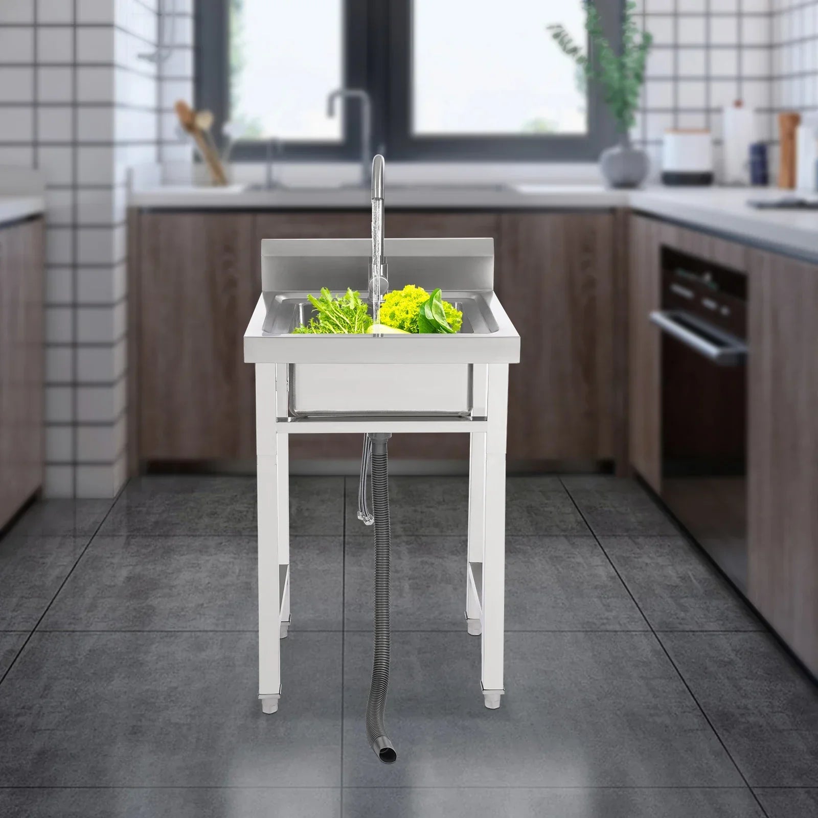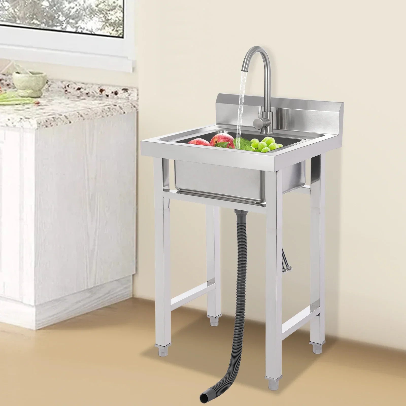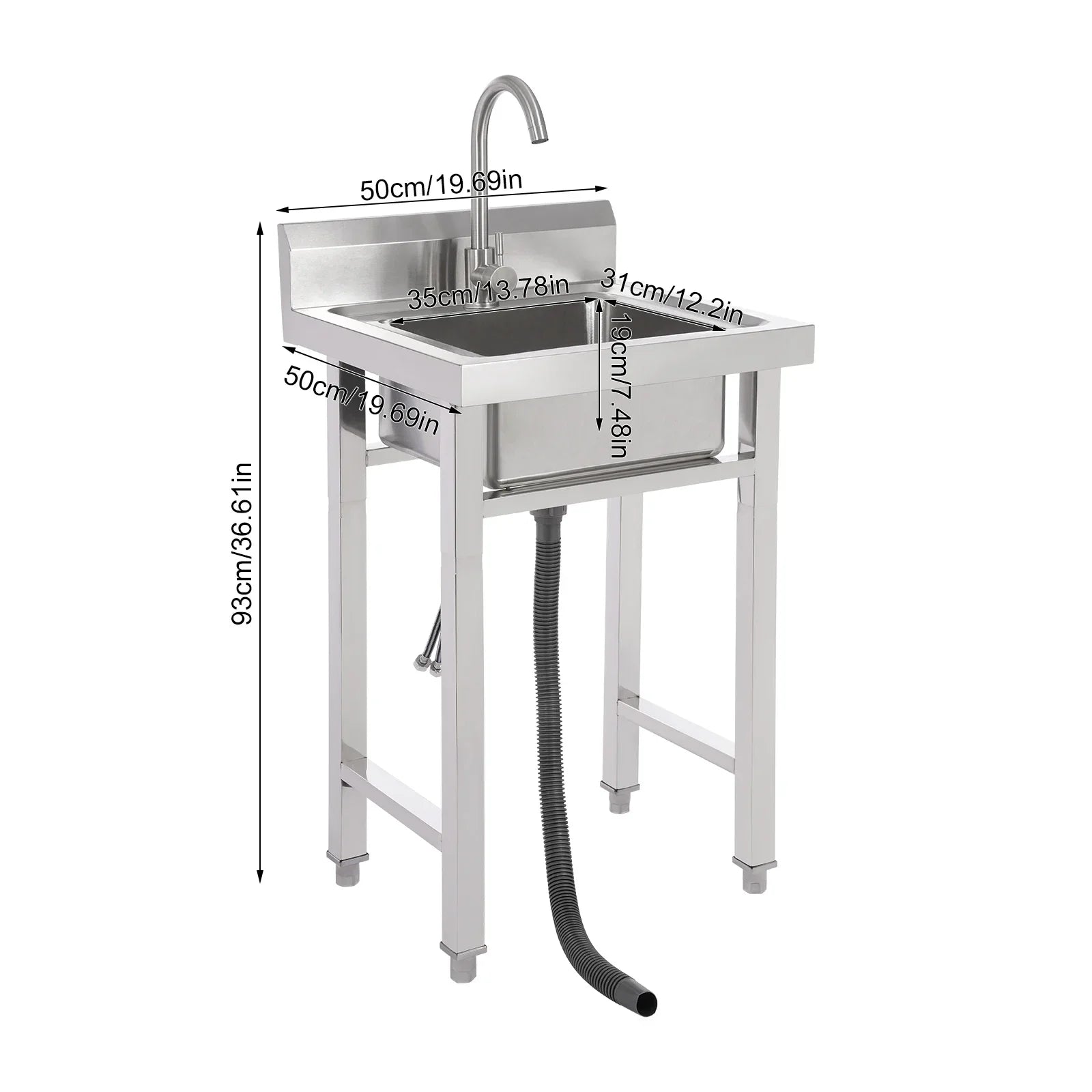 Kommerzielle Waschbecken aus 201 Edelstahl, bodenstehendes kommerzielles Waschbecken für Küchen, Cafés, Bars und Milchteeladen