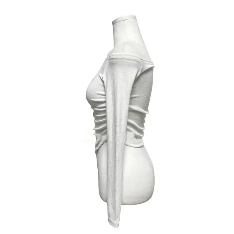 Korean Dongdaemun Fashionable Women's Clothing Off-the-shoulder Sexy Slimming Long Sleeve T-shirt Cropped Top Smooth Silhouette