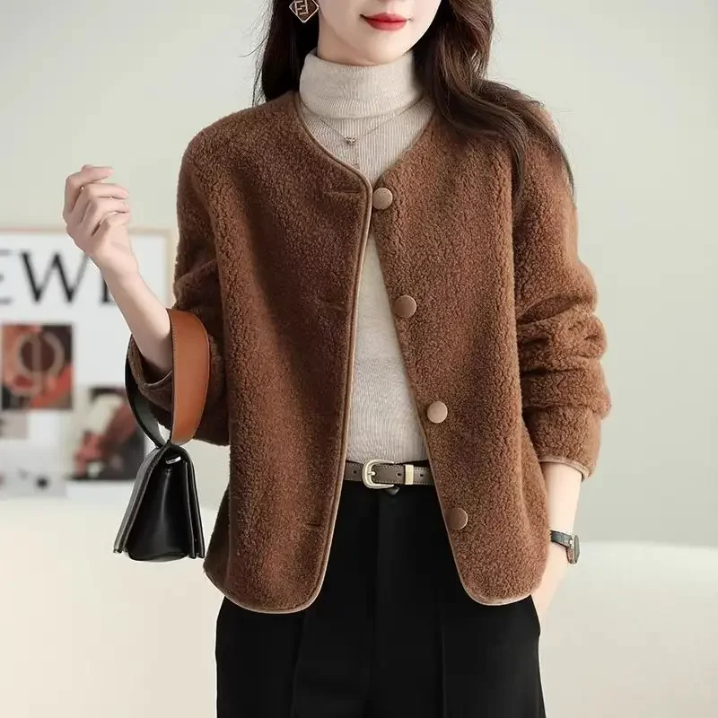 Koreanischer Stil, Fleece-Damenjacken, kurzer Damenmantel, hohe Qualität, 2025, Trend, jugendlich, neu in Oberbekleidung, Vintage-Mode, günstig