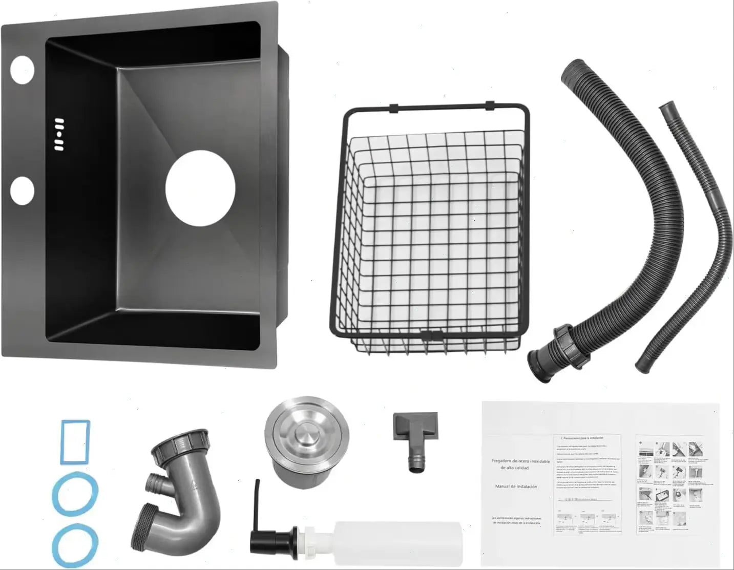 Küchenspüle 45x40cm Spülbecken Einbauspüle mit Abflusskorb und Seifenspender Edelstahl Spüle Küche Waschbecken, 1 Becken, Schwar