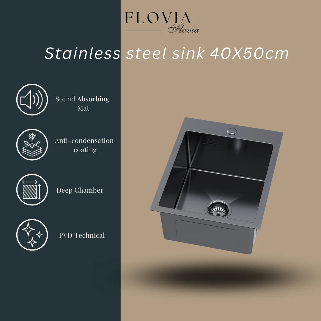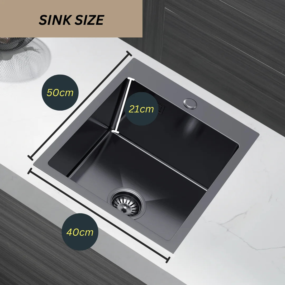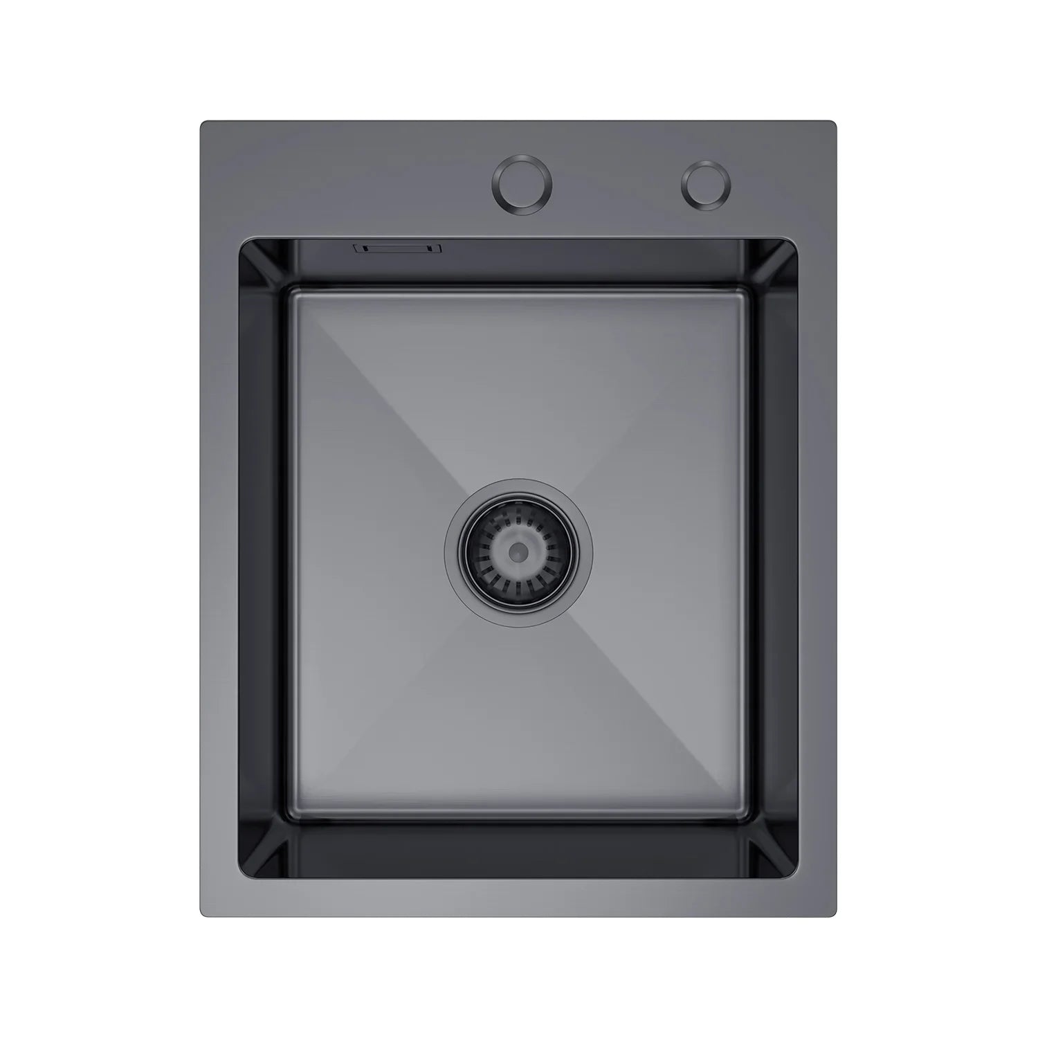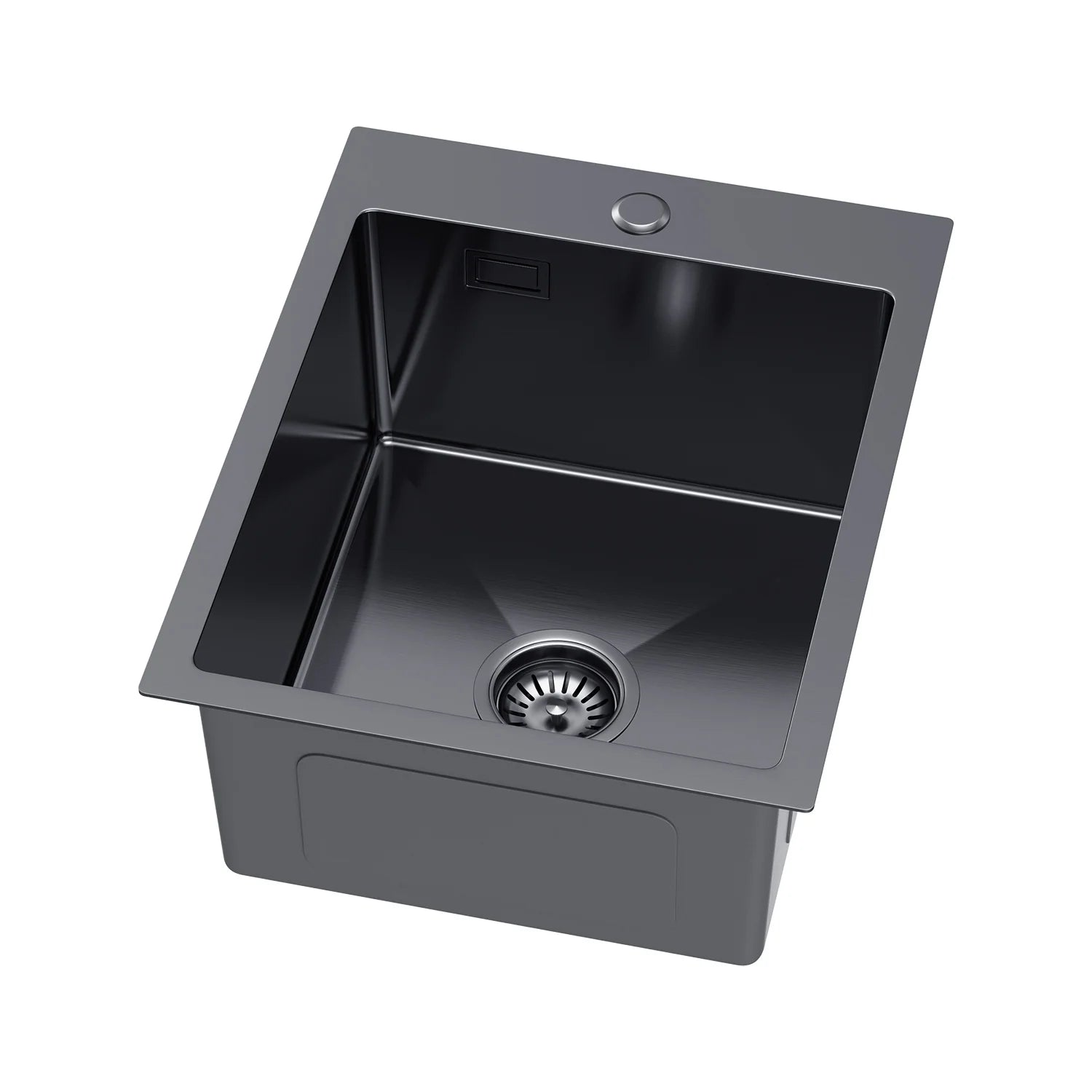 Küchenspüle aus Edelstahl, 40 x 50 cm, Graphit, Einzelschüssel mit Siphon, leicht zu reinigen, handgefertigte Spüle für die Küche