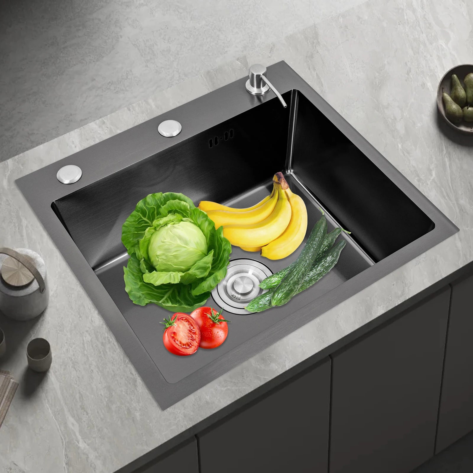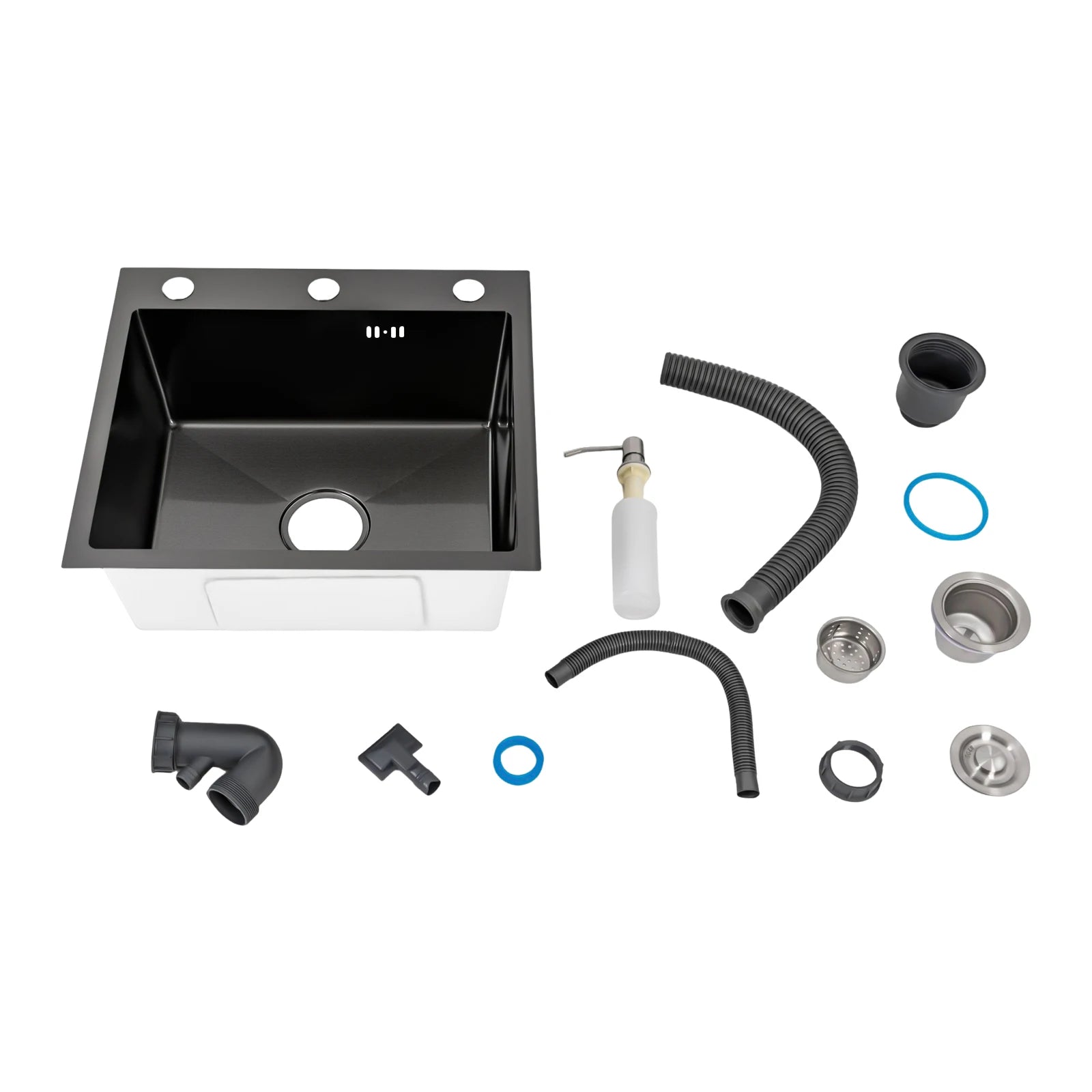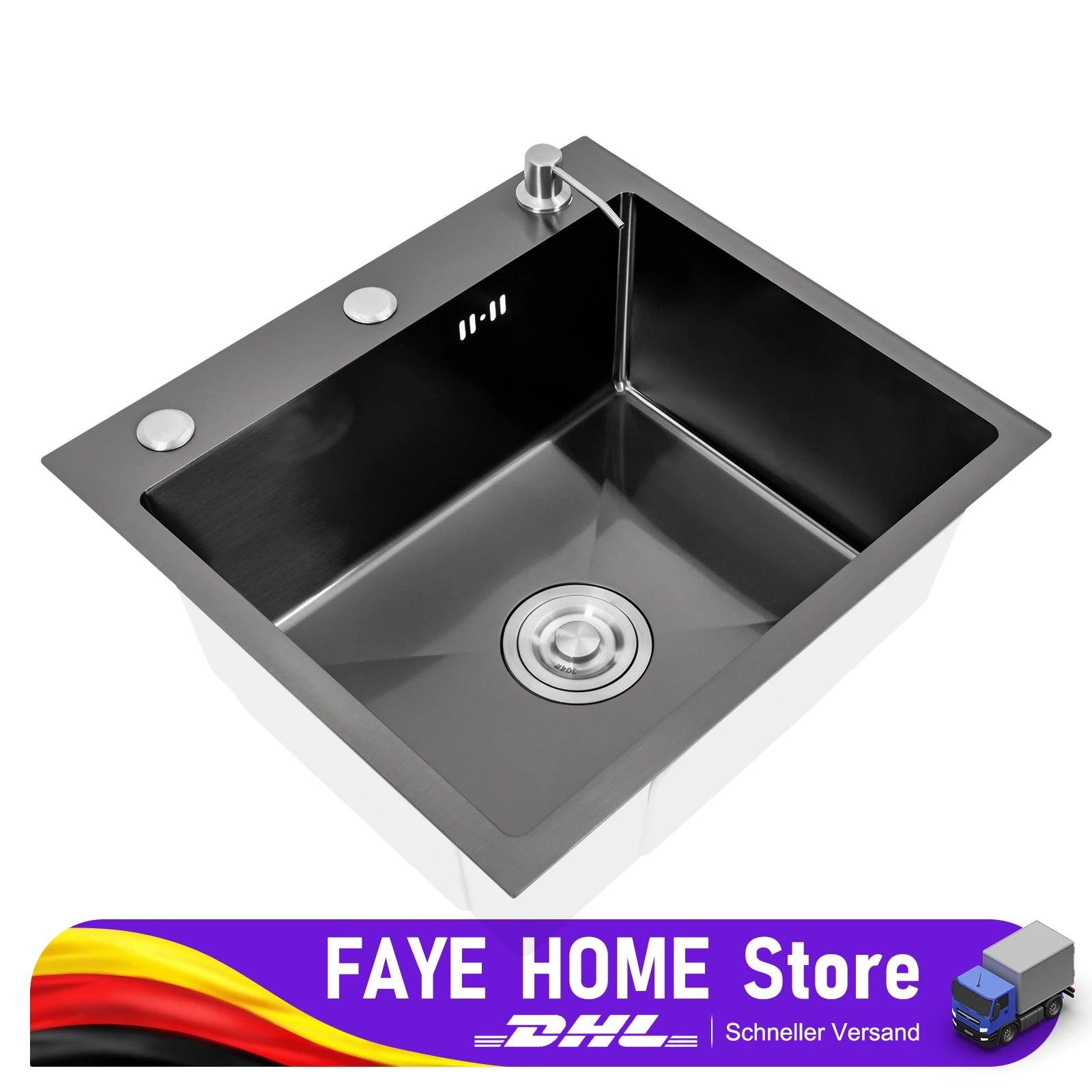 Küchenspüle aus Edelstahl mit integrierter Einzelschüssel, mit Rohr und Seifenspender