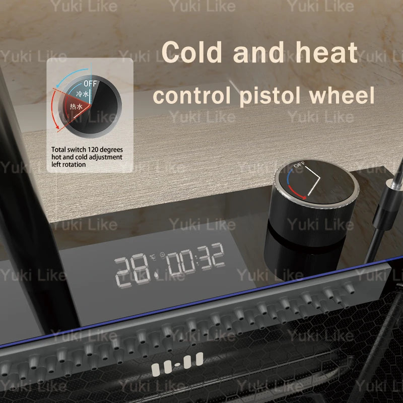 Küchenspüle aus Edelstahl mit Wasserfall, extra große Einzelschüssel, Digitalanzeige, multifunktionale Geschirrspülbecken