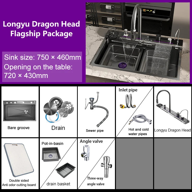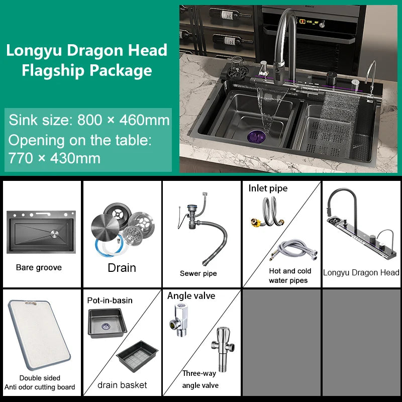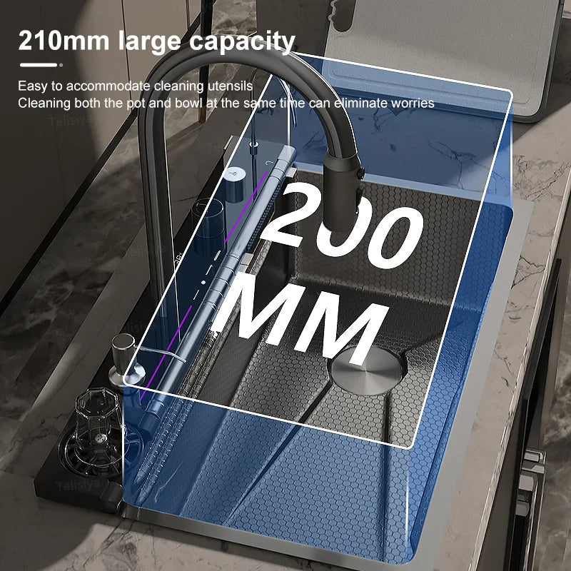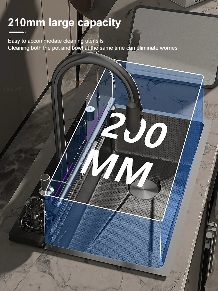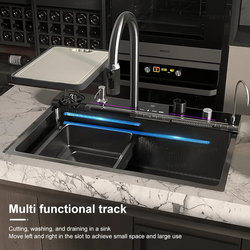 Küchenspüle aus Edelstahl mit Wasserfallprägung, digitales Waschbecken mit einem Schlitz, Waschtank für Wohnungen und Wohnungen