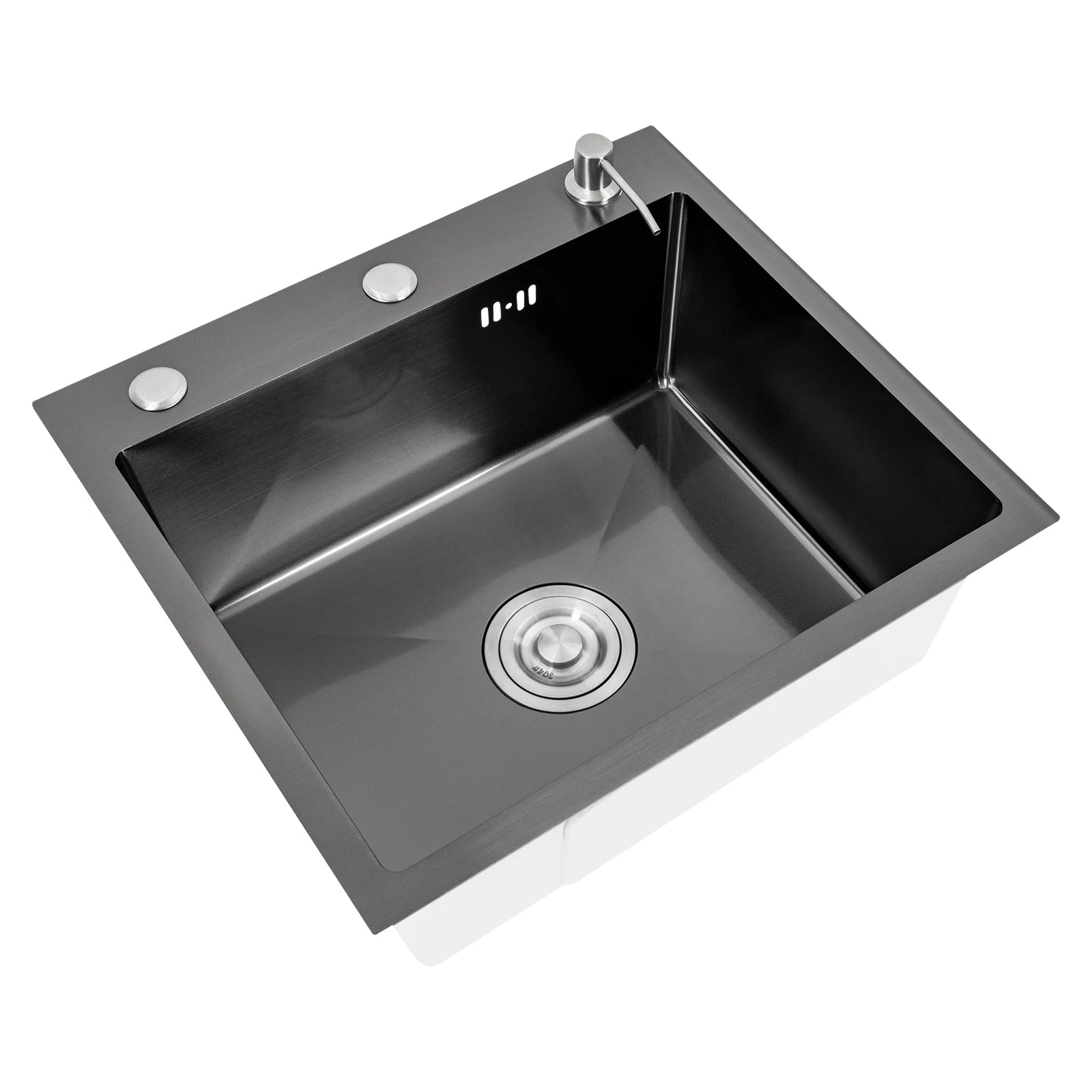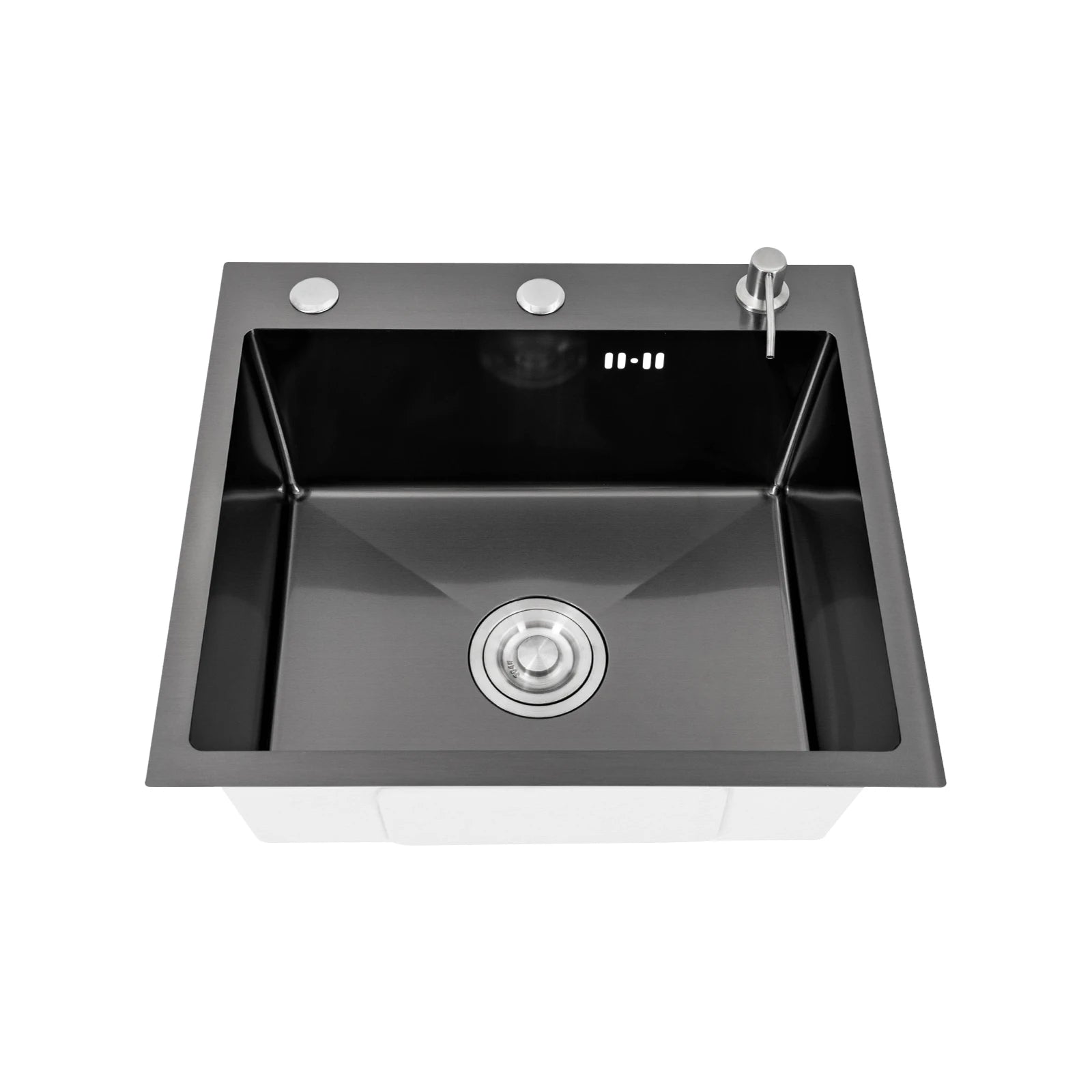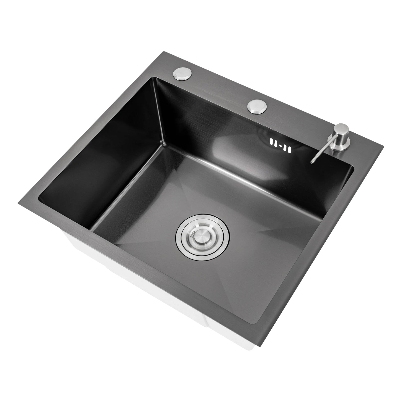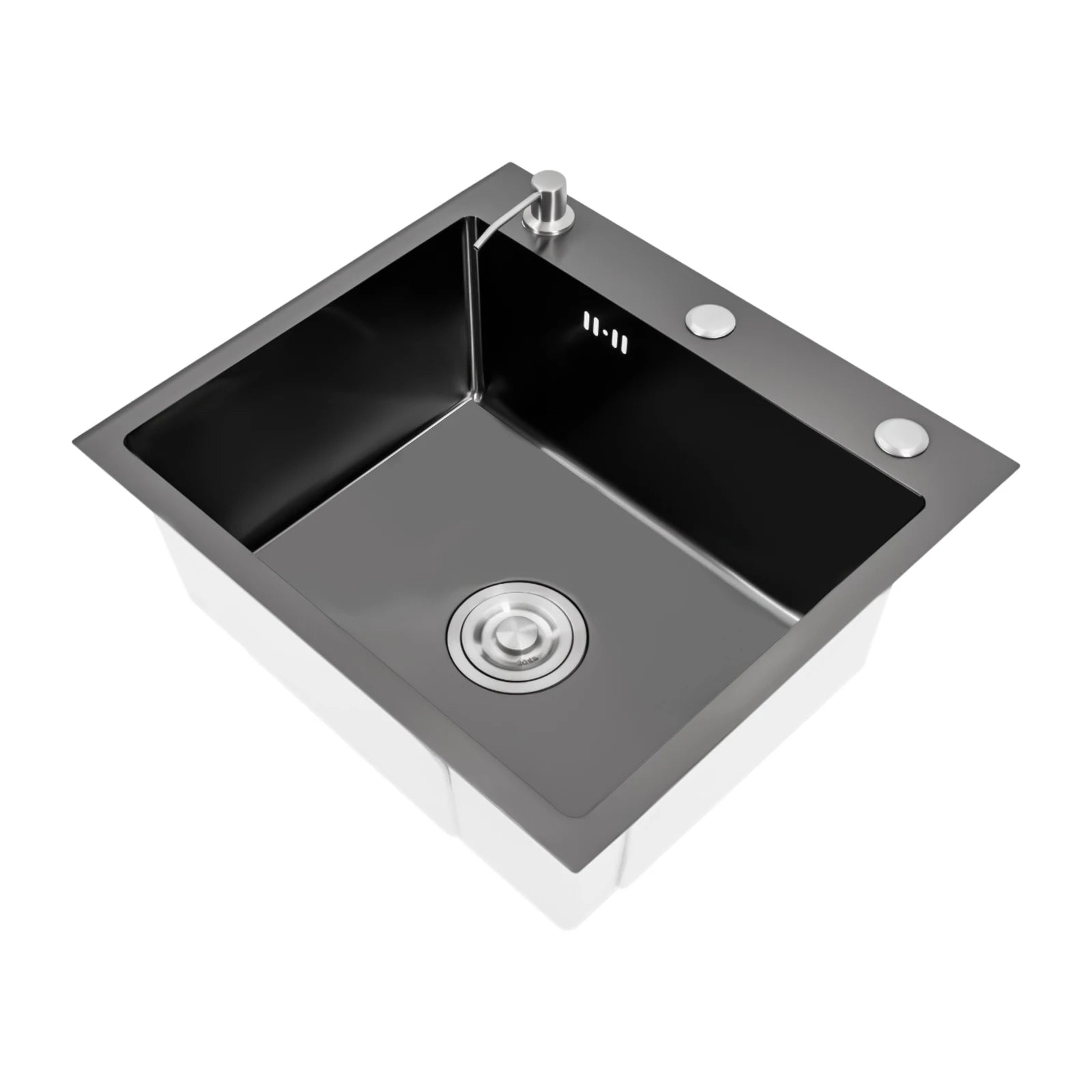 Küchenspüle, Edelstahlspüle, schwarze Edelstahlspüle, schnelle Entwässerung, gute Abdichtung, X-förmige Wassergeleitungsleitung