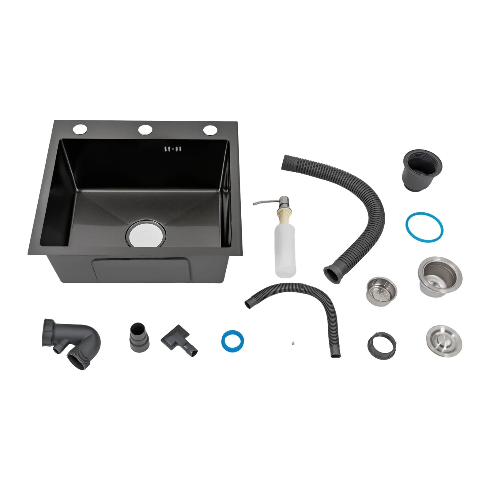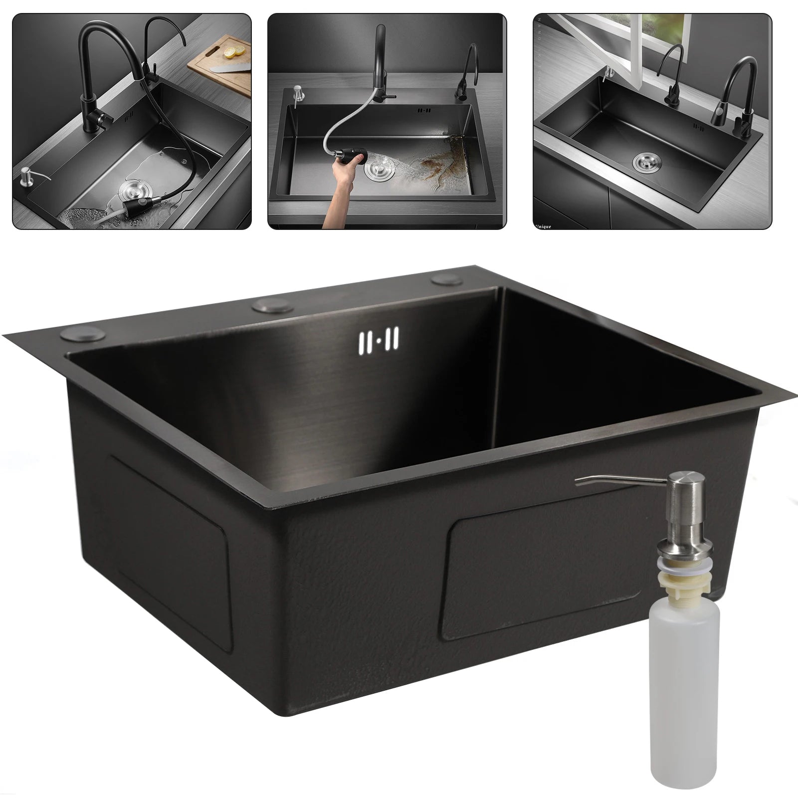 Küchenspüle-Set, mit Abtropffläche, integriertes Einzelschüssel-Spülbecken mit Seifenspender, Edelstahlspüle, Küchenspüle 50 x 45 cm