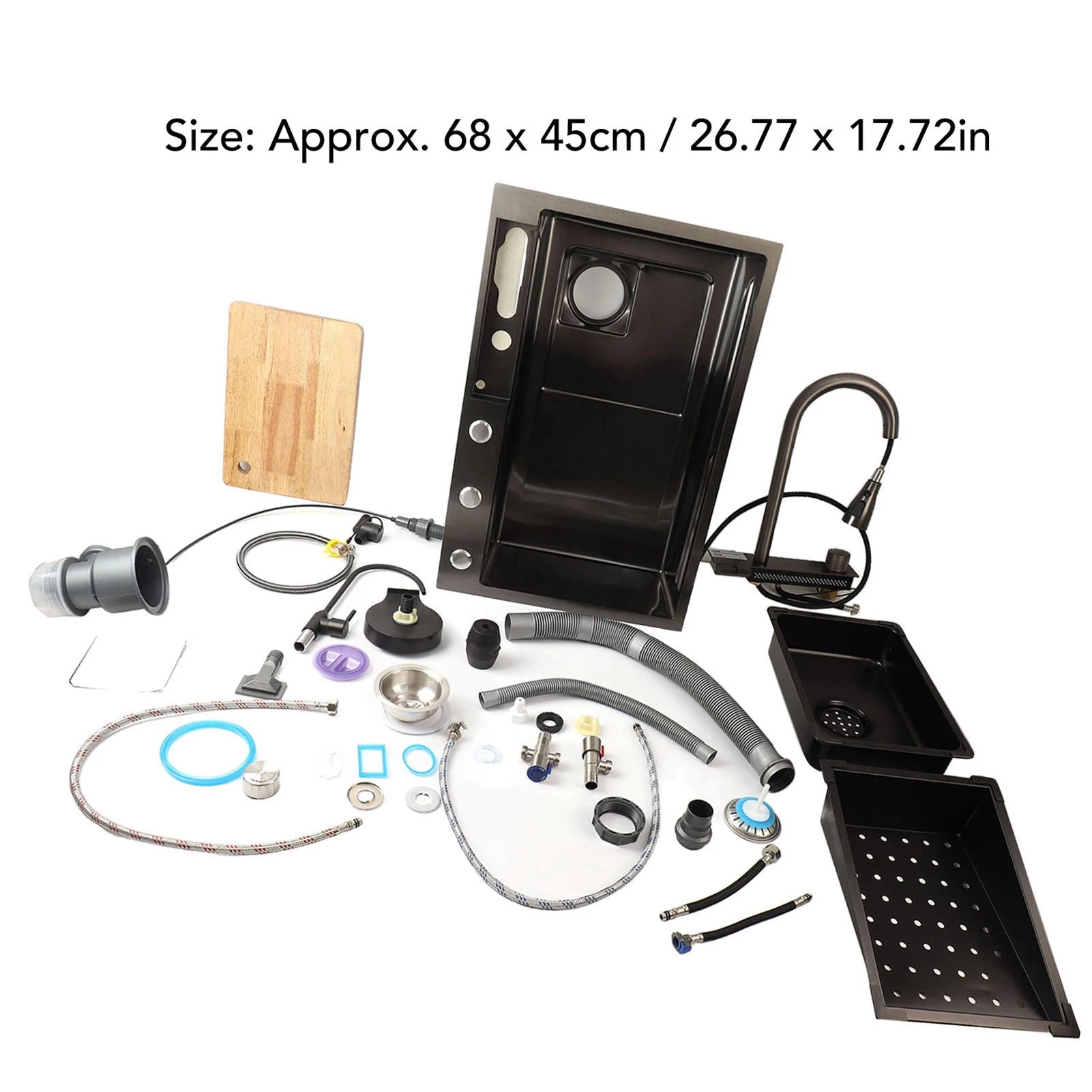 Küchenspüle unter der Theke, 68 x 45 cm, verdickter Edelstahl, Digitalanzeige, Küchenspüle, Küchenspüle, Unterbauwaschbecken