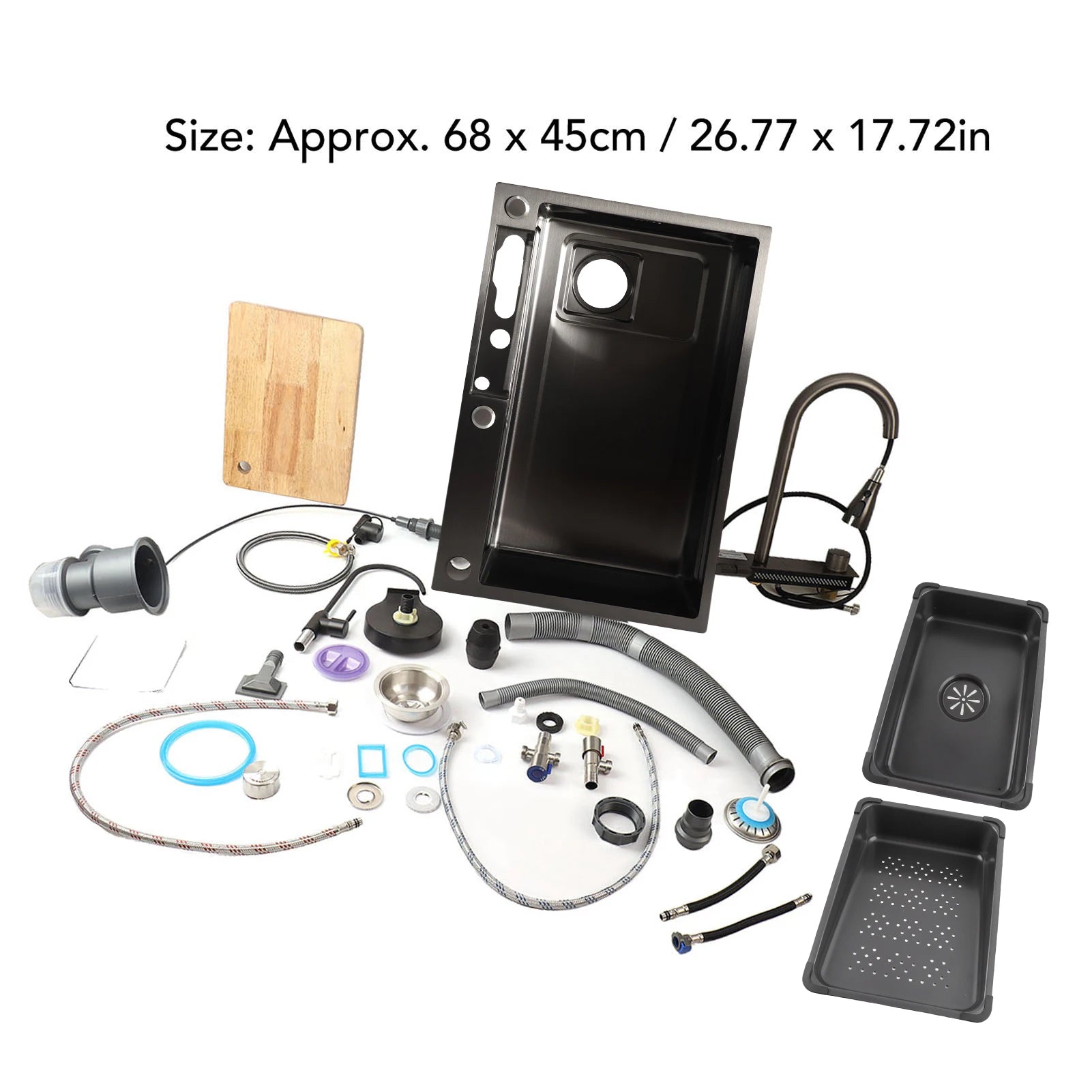 Küchenspüle unter der Theke, 68 x 45 cm, verdickter Edelstahl, Digitalanzeige, Küchenspüle, Unterbauwaschbecken