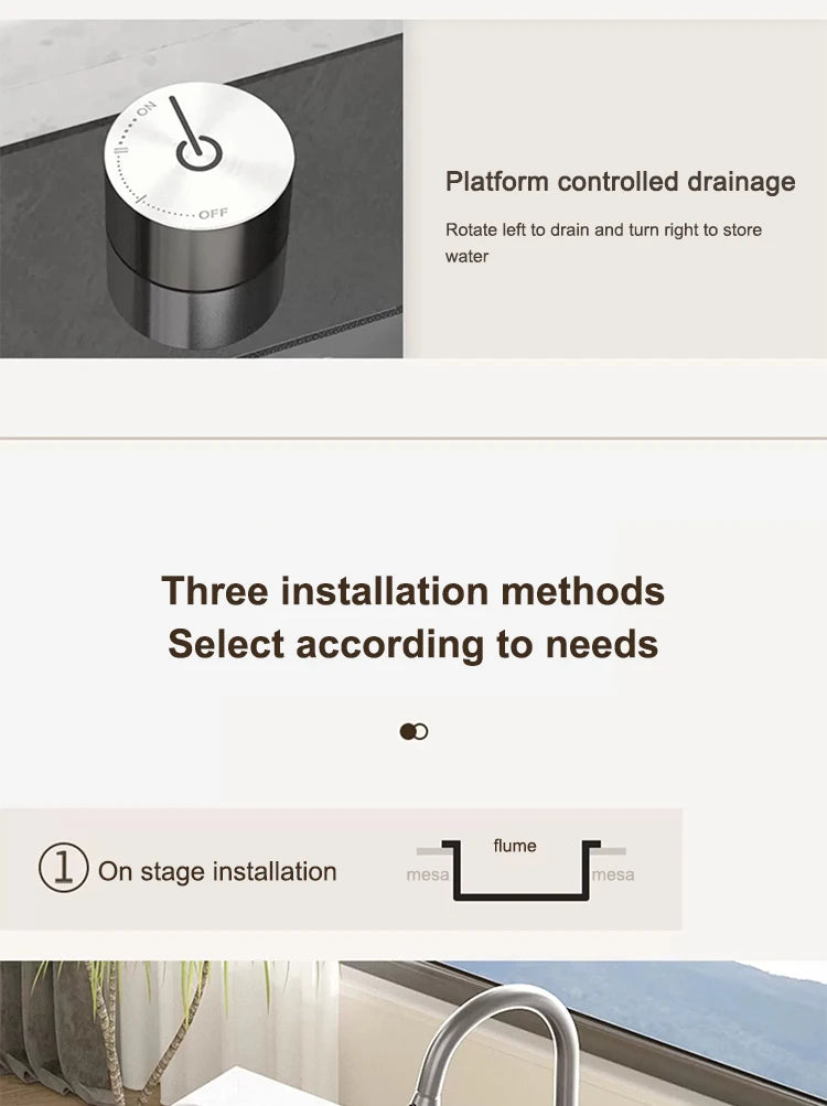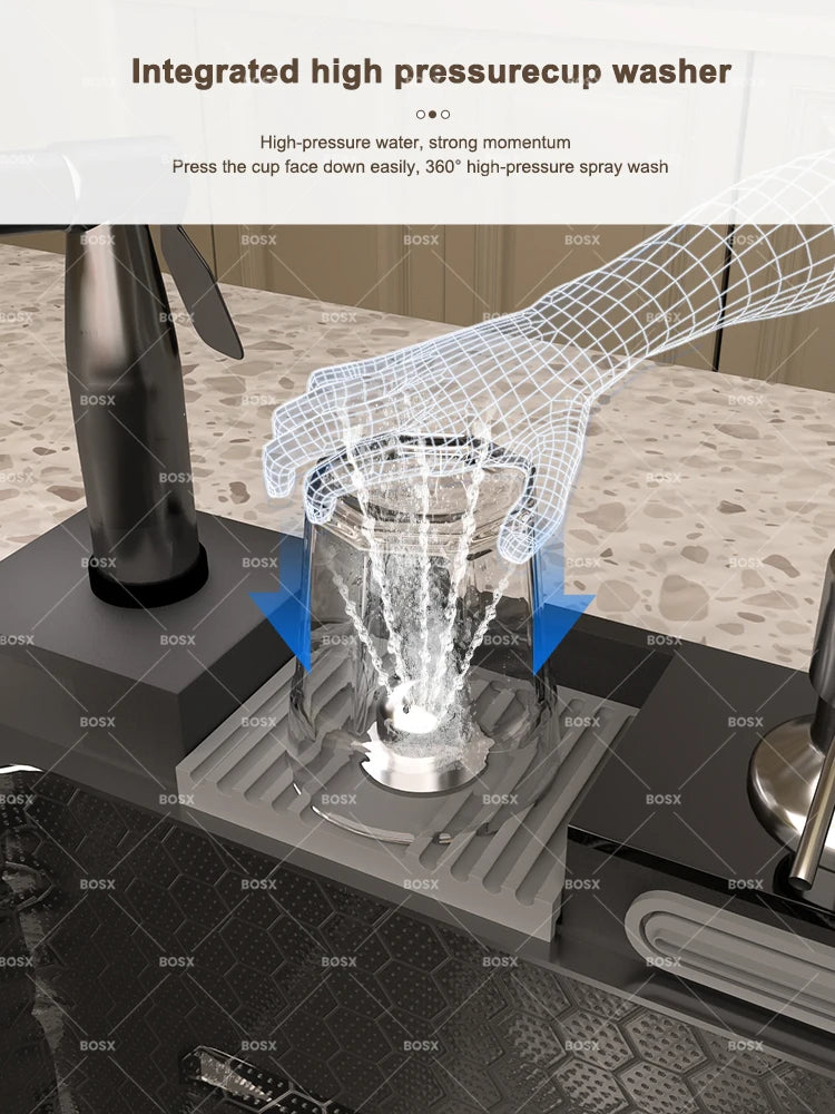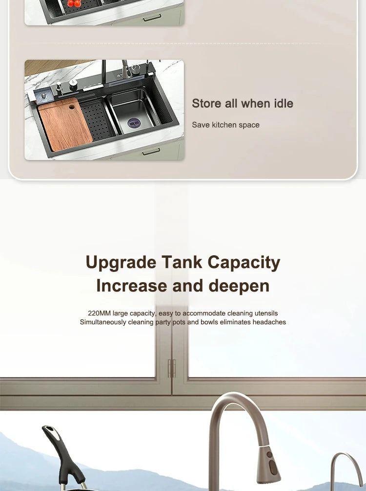 Küchenspüle, Wasserfall-Waschbecken aus Edelstahl, extra großer Einzelschlitz mit Digitalanzeige, Wasserhahn-Set für die Küche