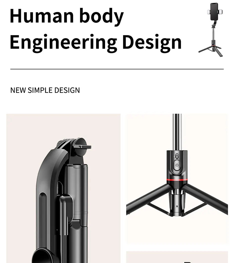 L13D Selfie Stick 1160mm with Wireless Bluetooth Double Fill Light Extended Tripod with Remote Shutter for Android IOS Cellphone