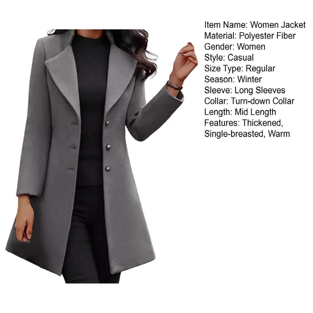 Long Sleeve Coat Elegant Women's Woolen Jacket with Turn-down Collar Slim Fit for Commuting Dating in Spring Fall Winter Women