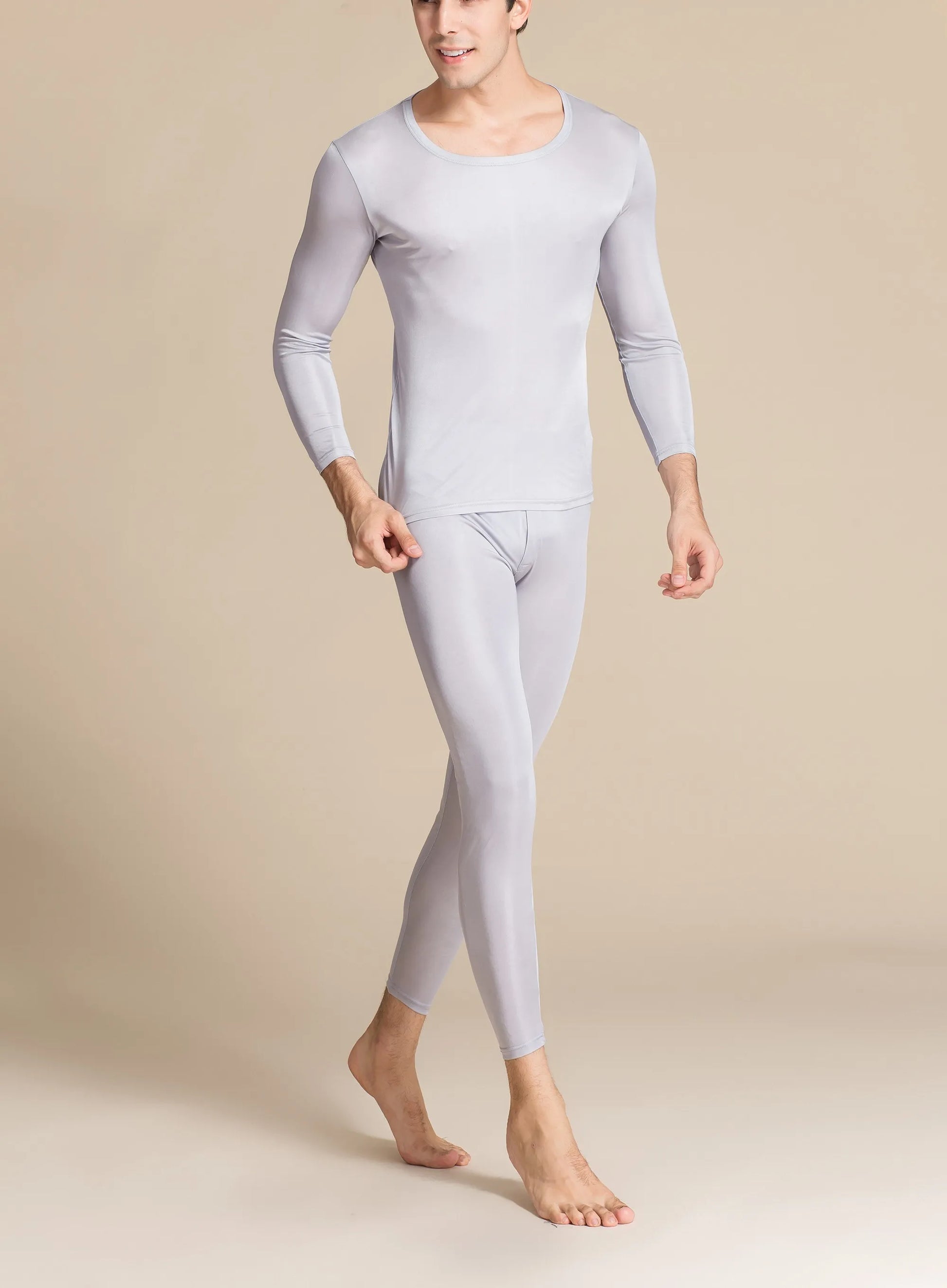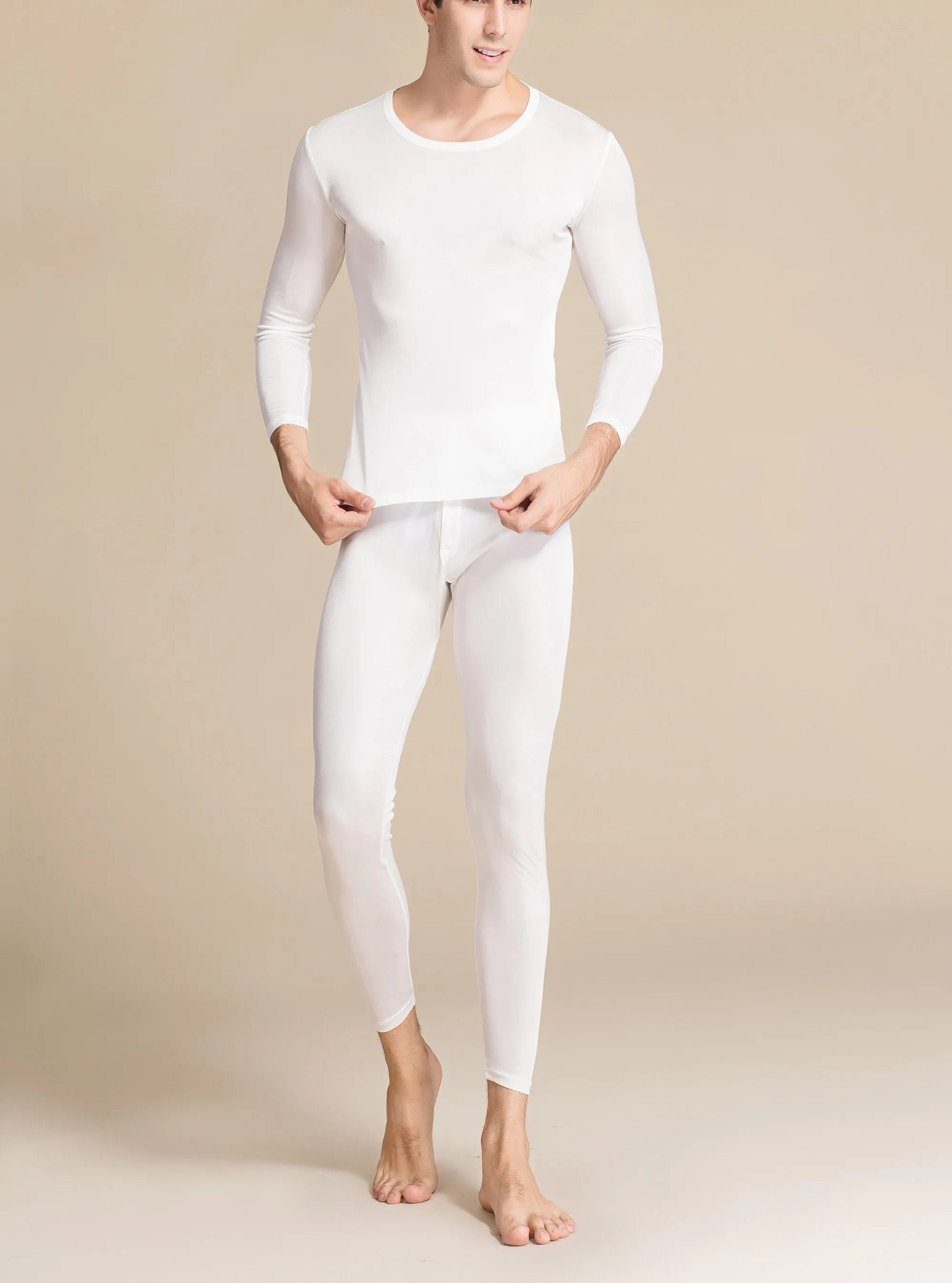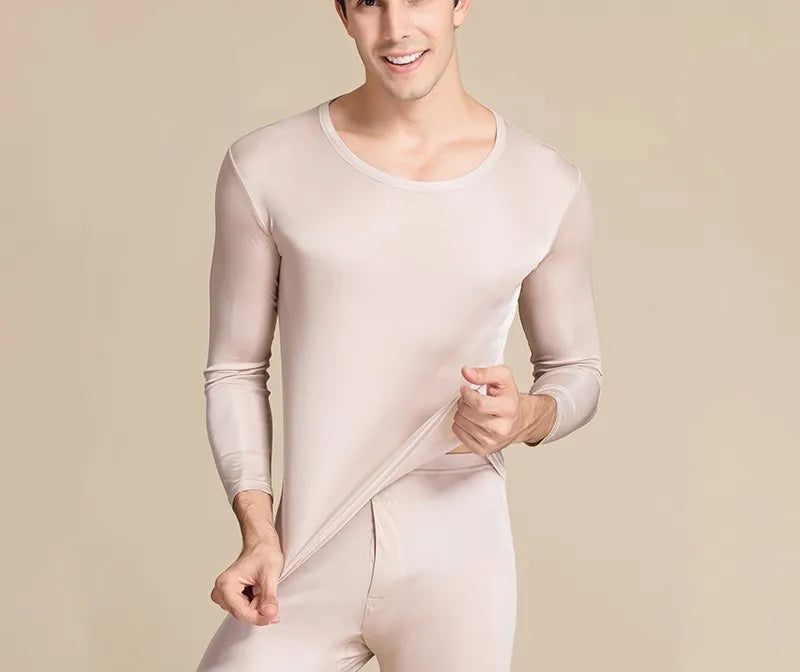 Lange Unterwäsche aus Seide für Herren, lange Unterhosen aus Maulbeerseide, Ober- und Unterteil, Thermounterwäsche-Set/Grundlagen