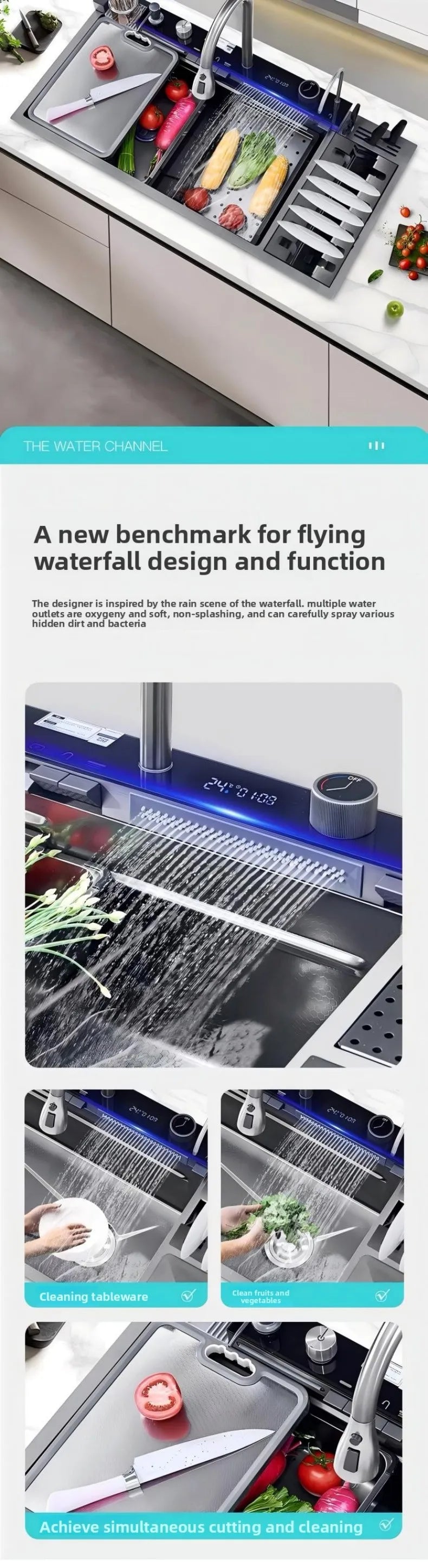 Large Single-Basin Digital Intelligent Sinks Water Bowl Stand 100x46cm Thickened Stainless Steel for Multi-Functional Kitchen