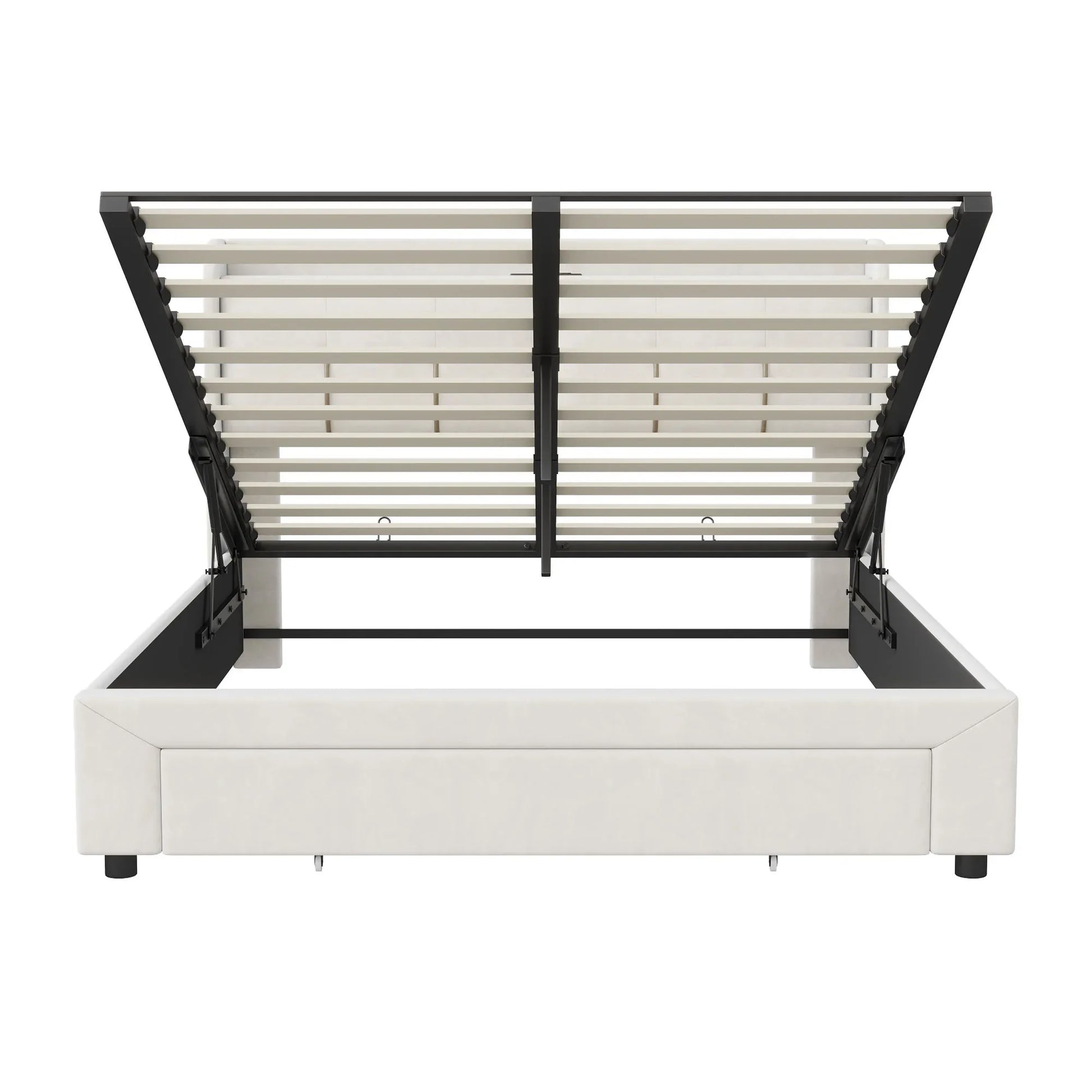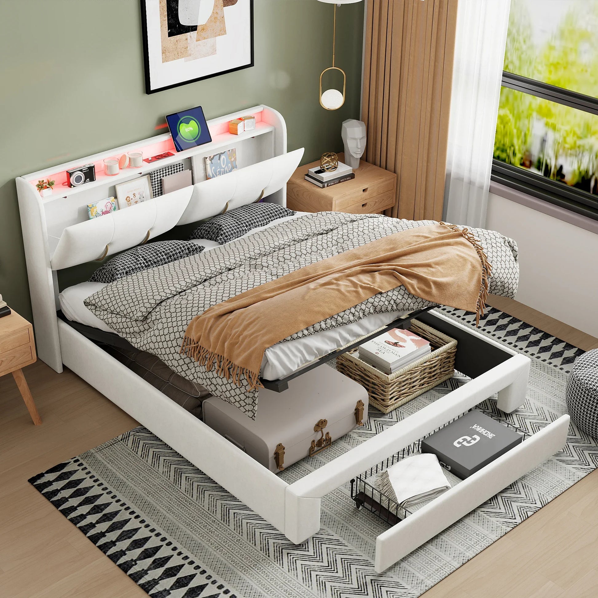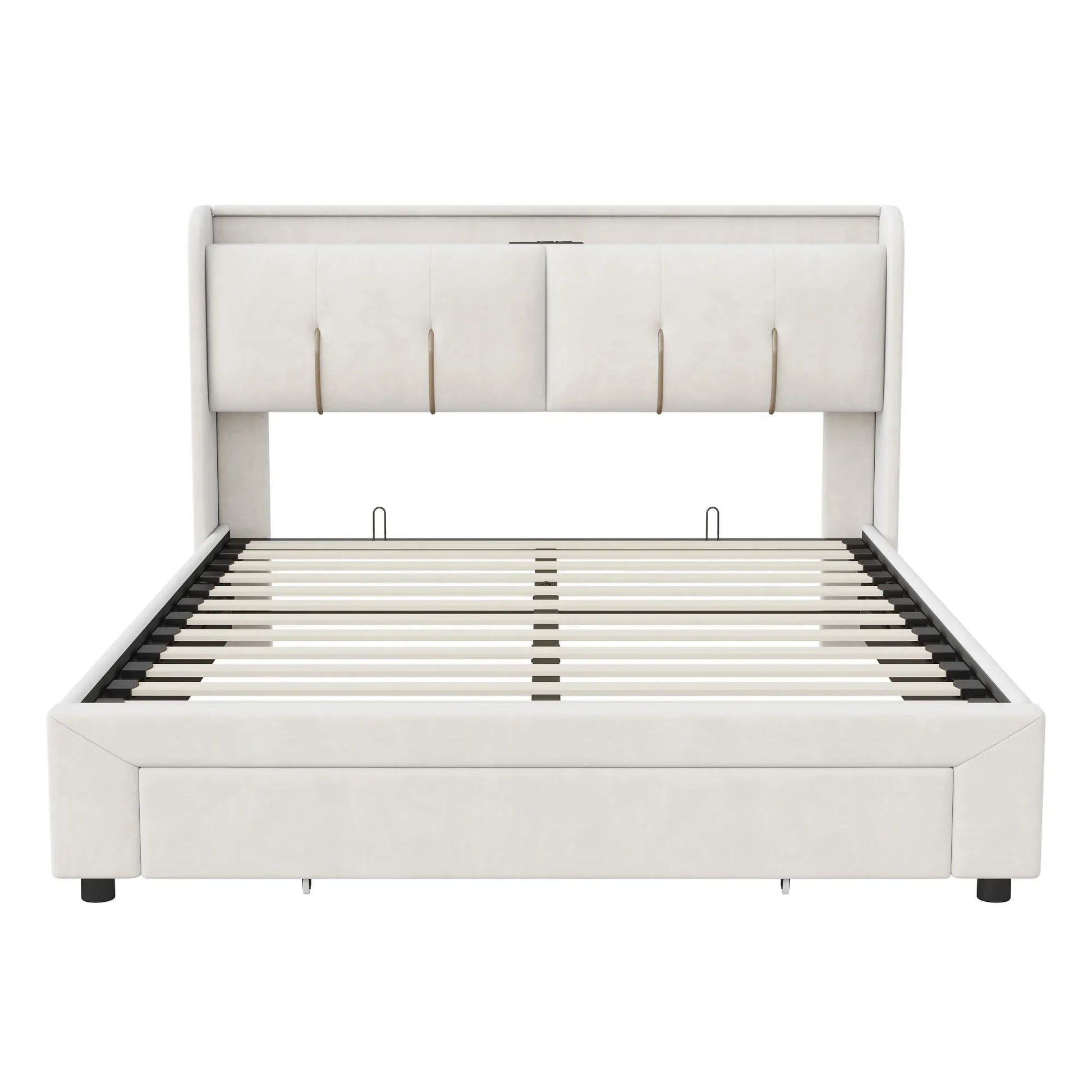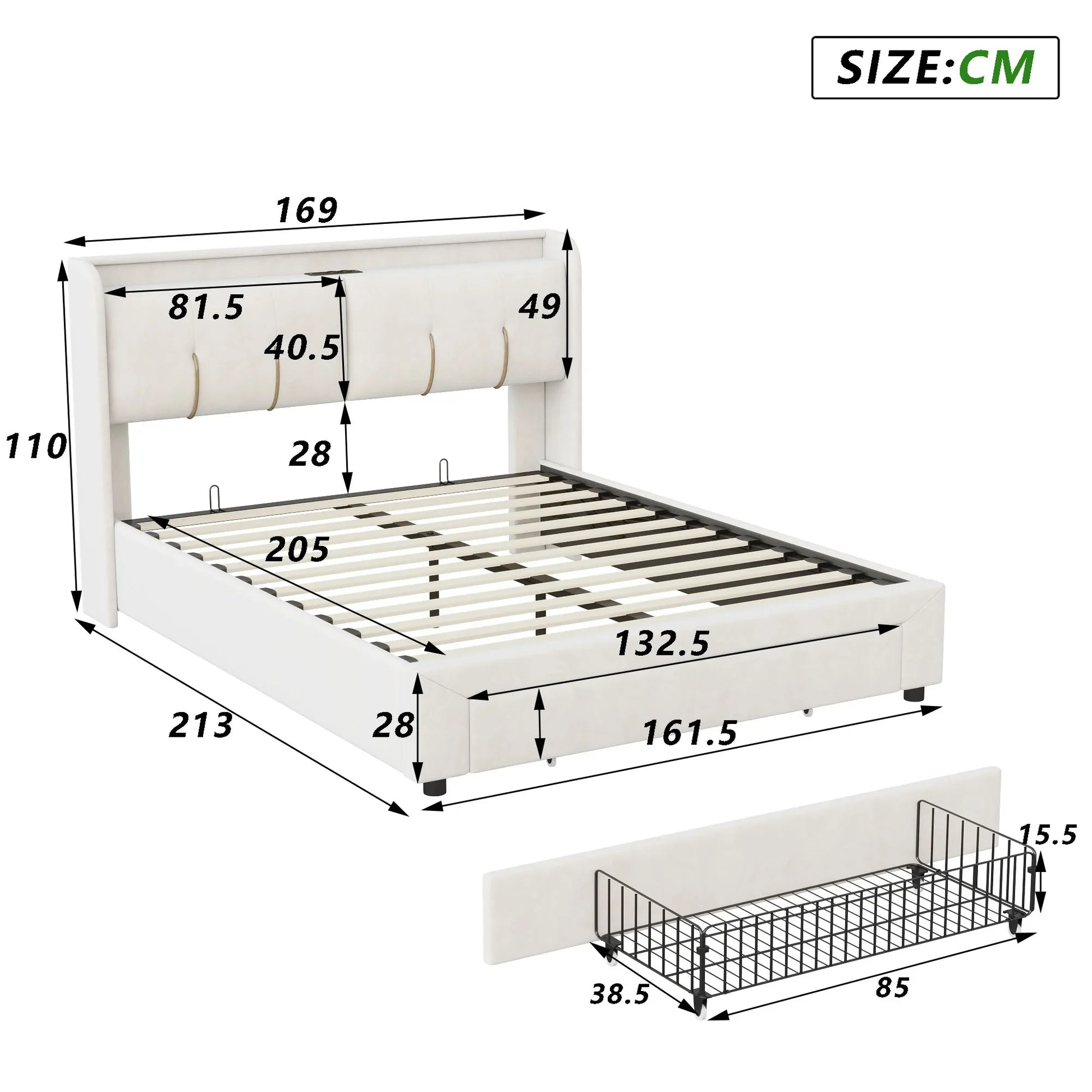 Lazy space Samt gepolsterter Bett rahmen mit RGB-Licht, USB-Anschluss Kopfteil, hydraulische Aufbewahrung sbett box, Doppelbett 140/x cm