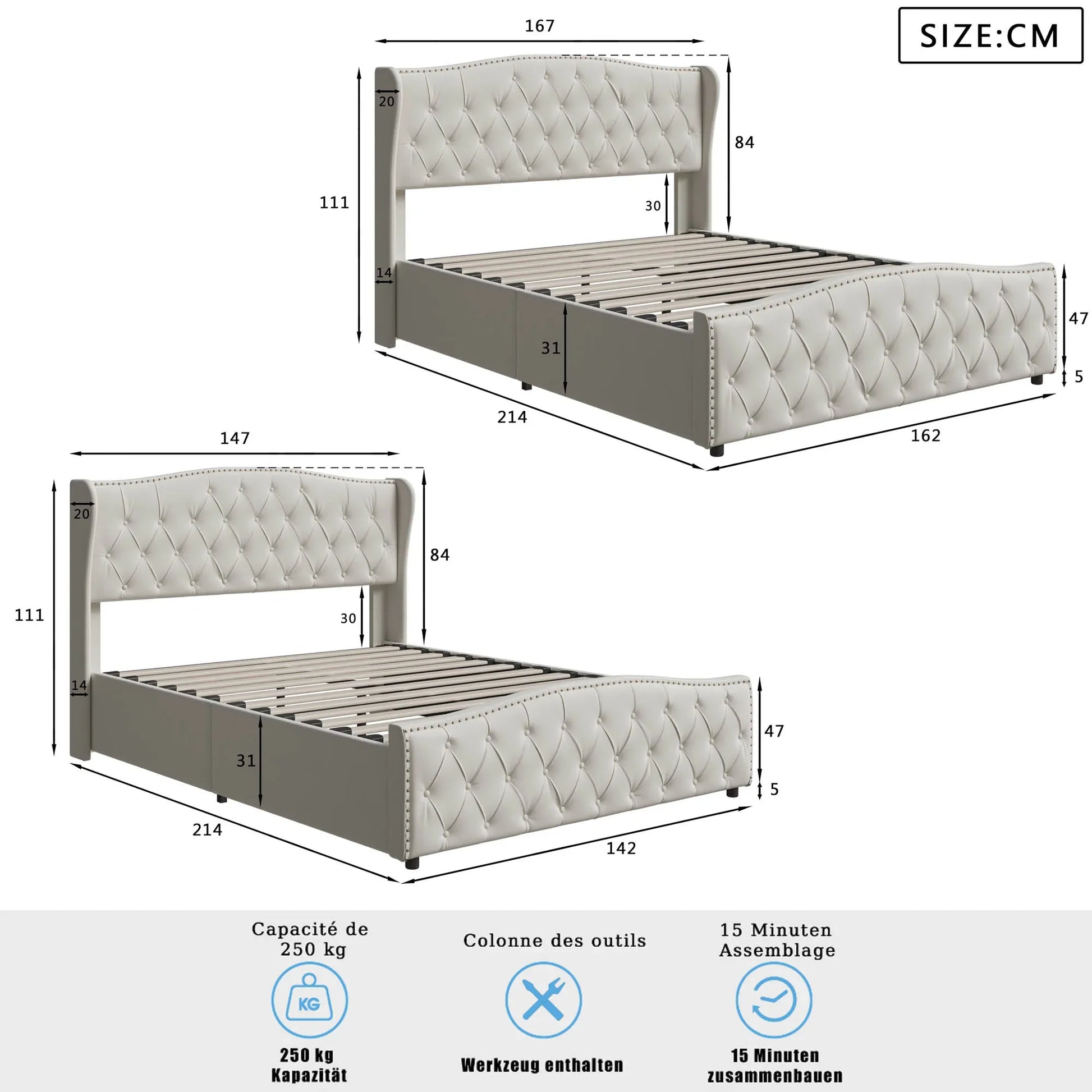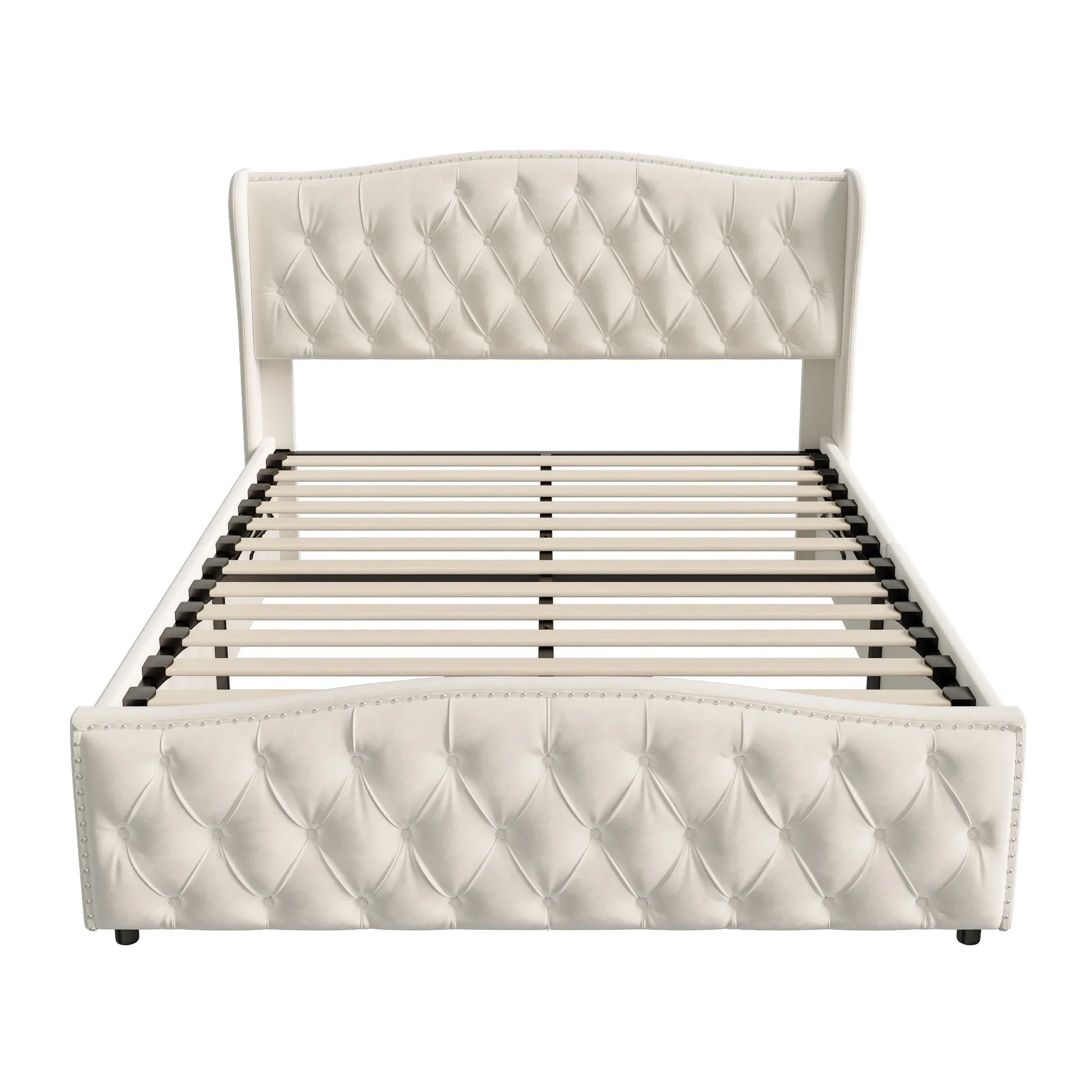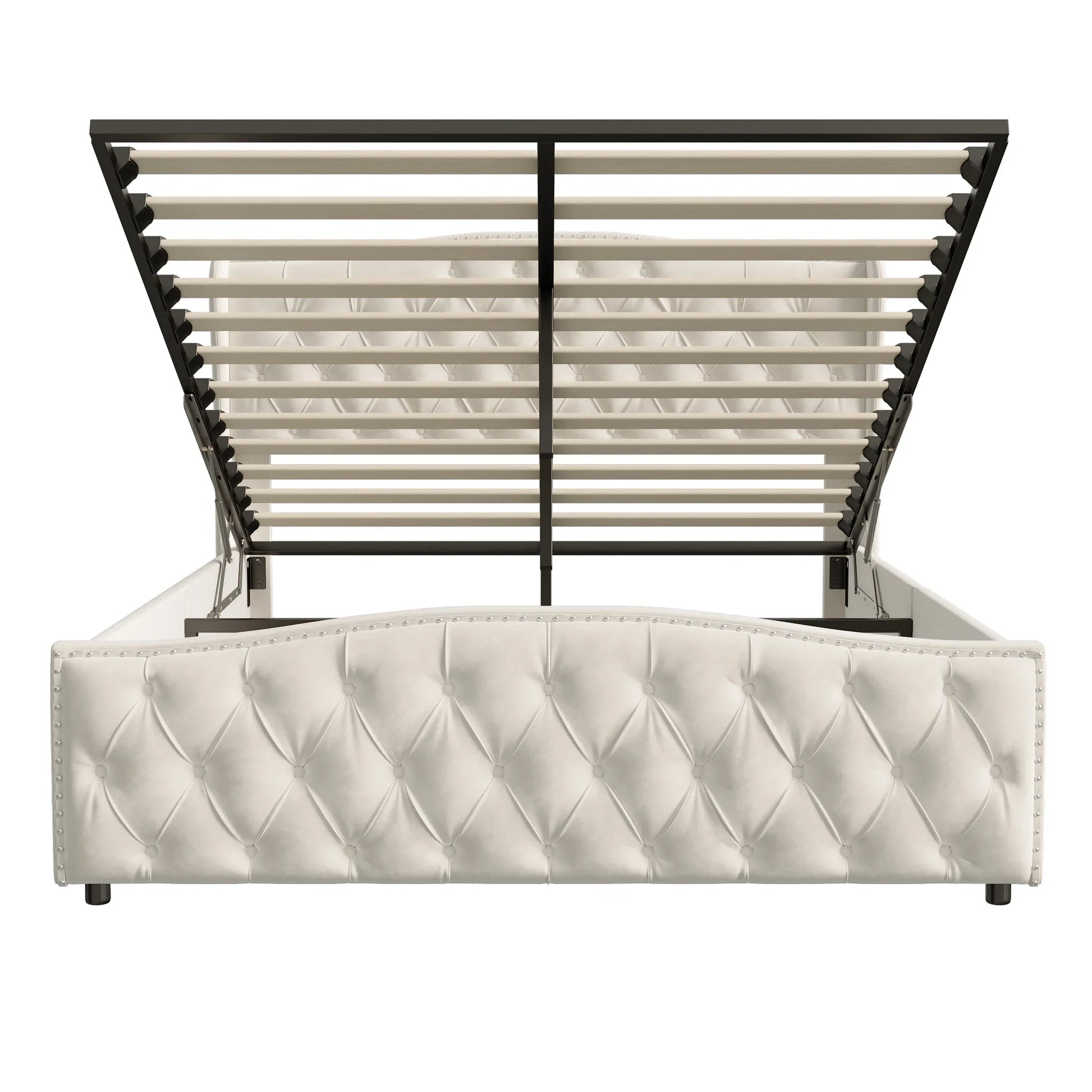 Lazyspace Samt gepolsterter Bettrahmen mit Lattenrost, hydraulisches Bett mit Stauraum, modernes Doppelbett mit Nietenverzierung
