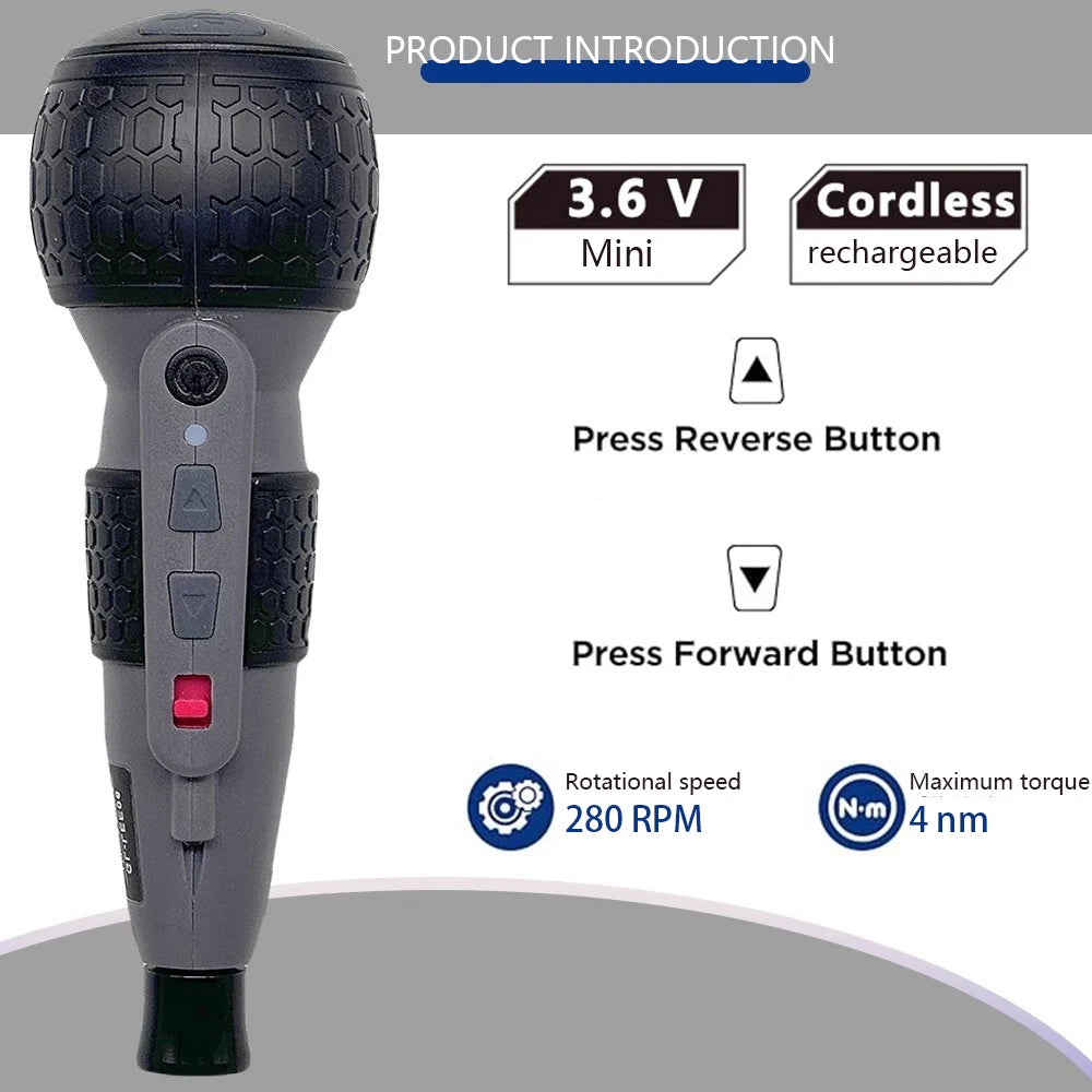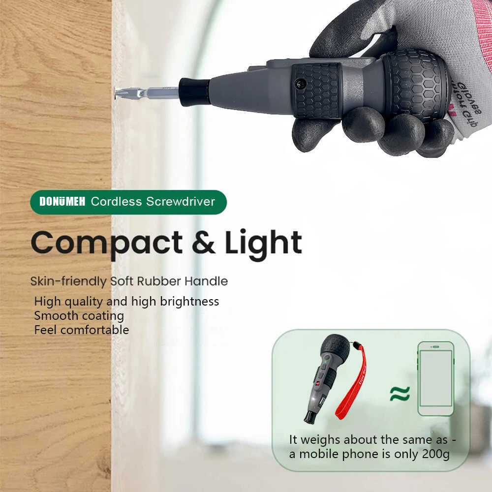 Leistungsstarker Mini-Elektroschrauber, Mini-Bohrmaschine, 3-stufiges Drehmoment, Typ C, LED-Licht, Stiftstil, Heimwartung, einfach für Anfänger