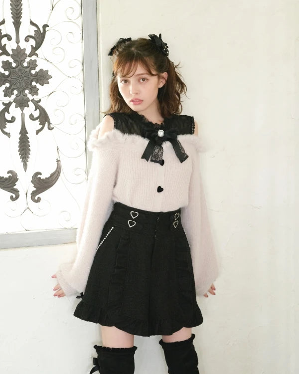 Liz-Pullover, japanische Massenproduktion, Herbst- und Winterwolle, schulterfrei, Spitze, schmaler kurzer Pullover, weicher, pelziger Strickpullover