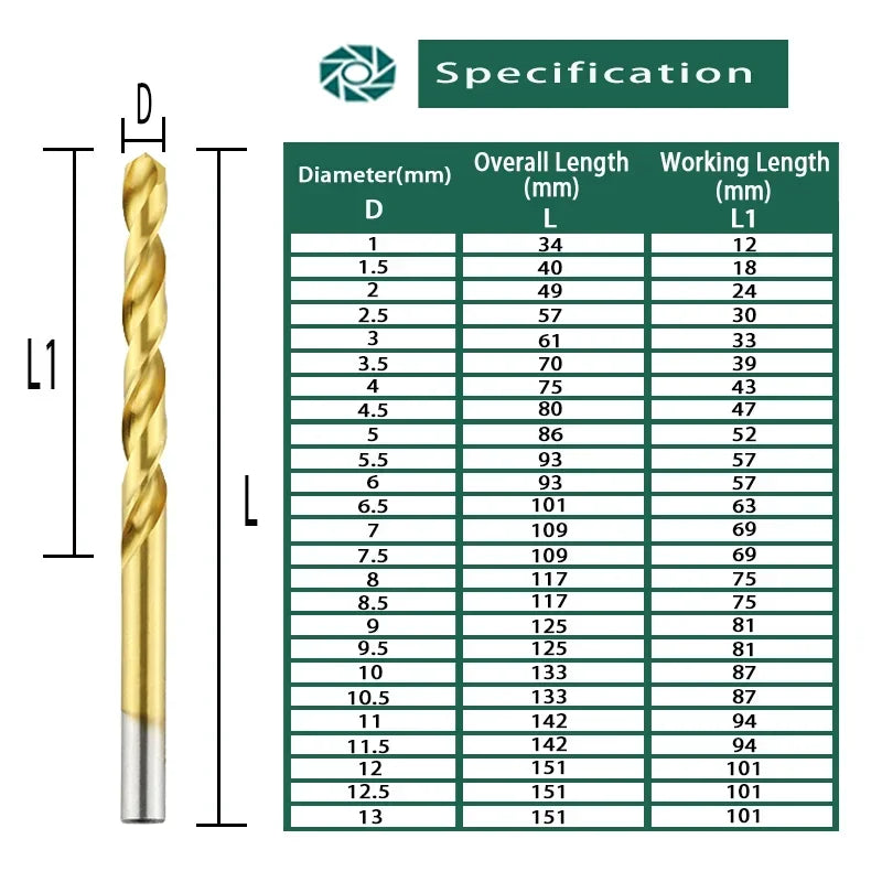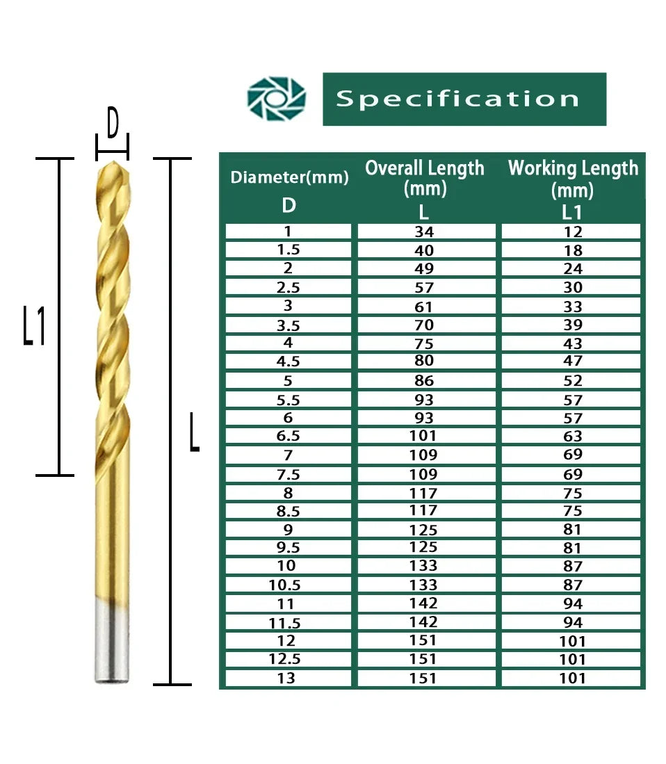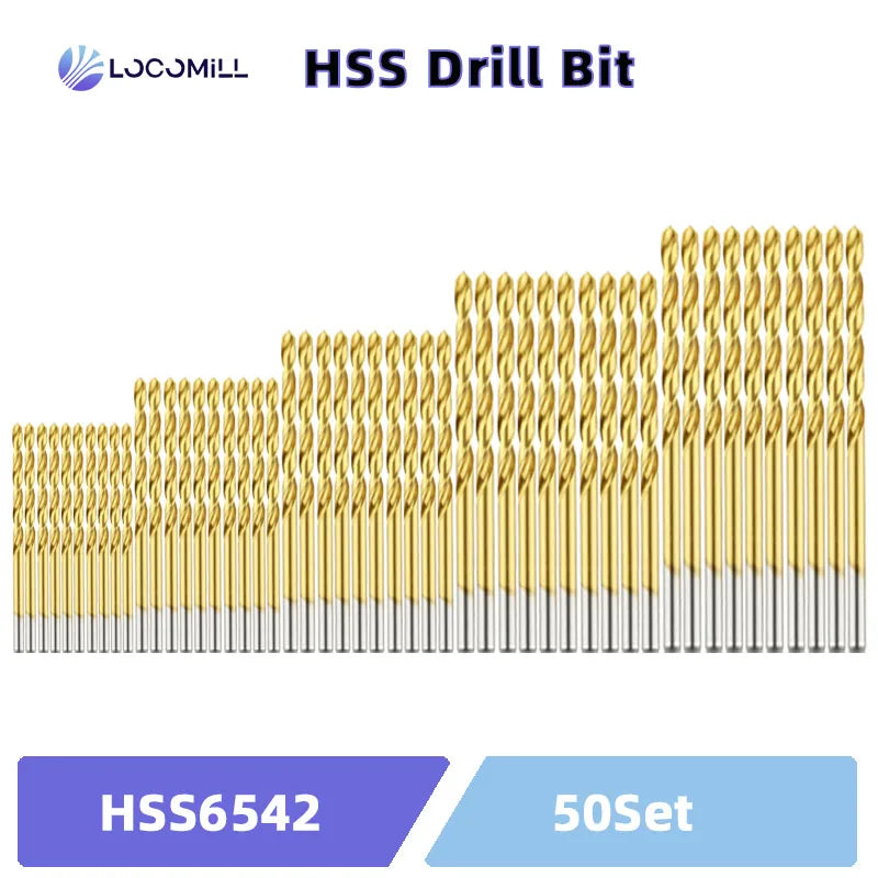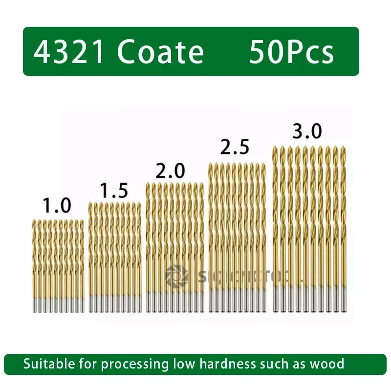 LOCO 50 Stück Titanbeschichtete Bohrer HSS Schnellarbeitsstahl-Set Werkzeug Hochwertige Elektrowerkzeuge 1/1,5/2/2,5/3 mm