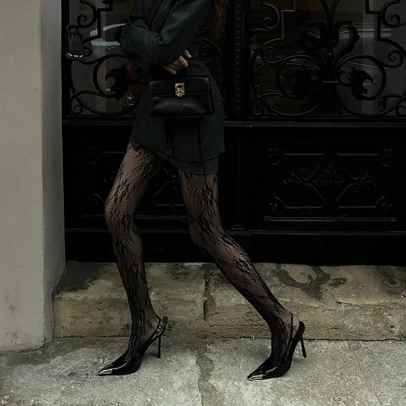 Lolita Sweet Girls Punk Style Floral Tights Women Thigh High Stockings Lingerie Women Sexy Hollow Out Mesh Fishnet Pantyhose