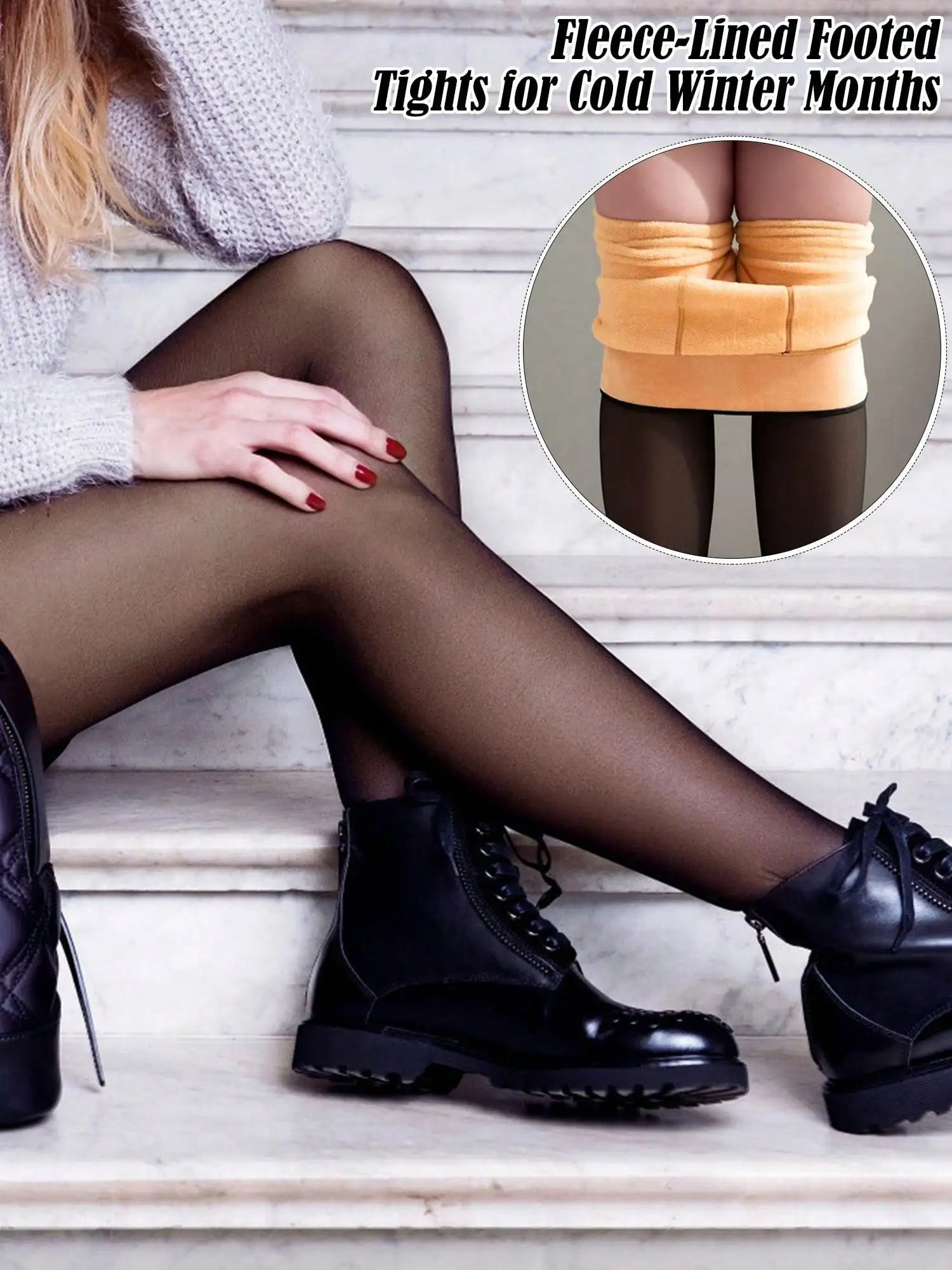 Luxtrada Womens Plus Size Thick Winter Tummy Control Fleece Lined Sheer Tights Fake Translucent Warm Leggings Thermal Opaque