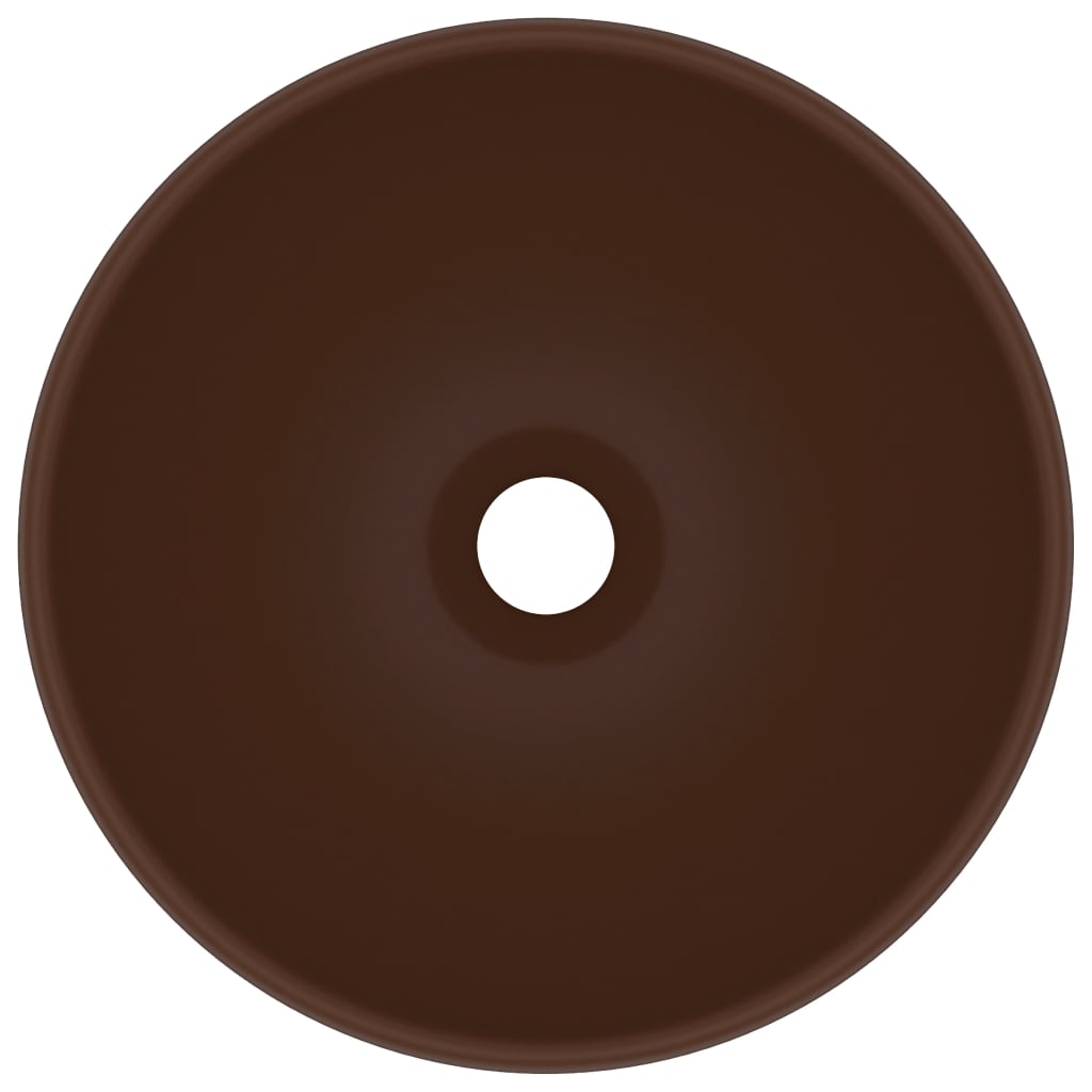Luxuriöses rundes Waschbecken, dunkelbraun, matt, 32,5 x 14 cm, Keramikwaschbecken, Badezimmer und Küchen, Dekoartikel, Badezimmerzubehör