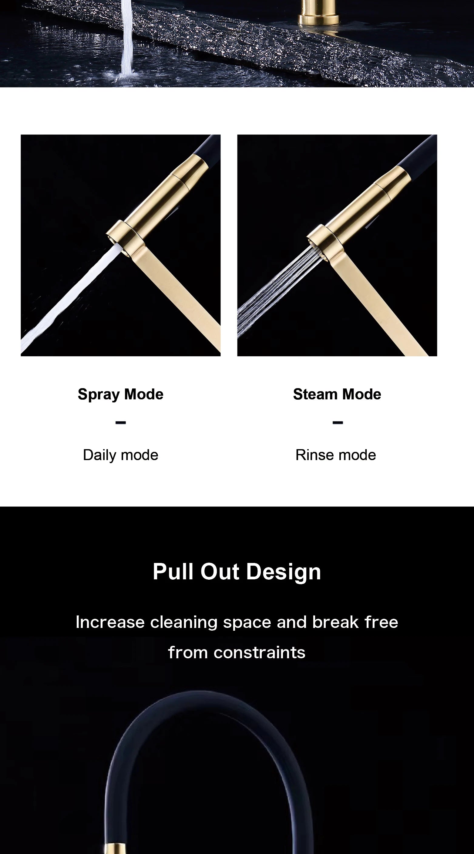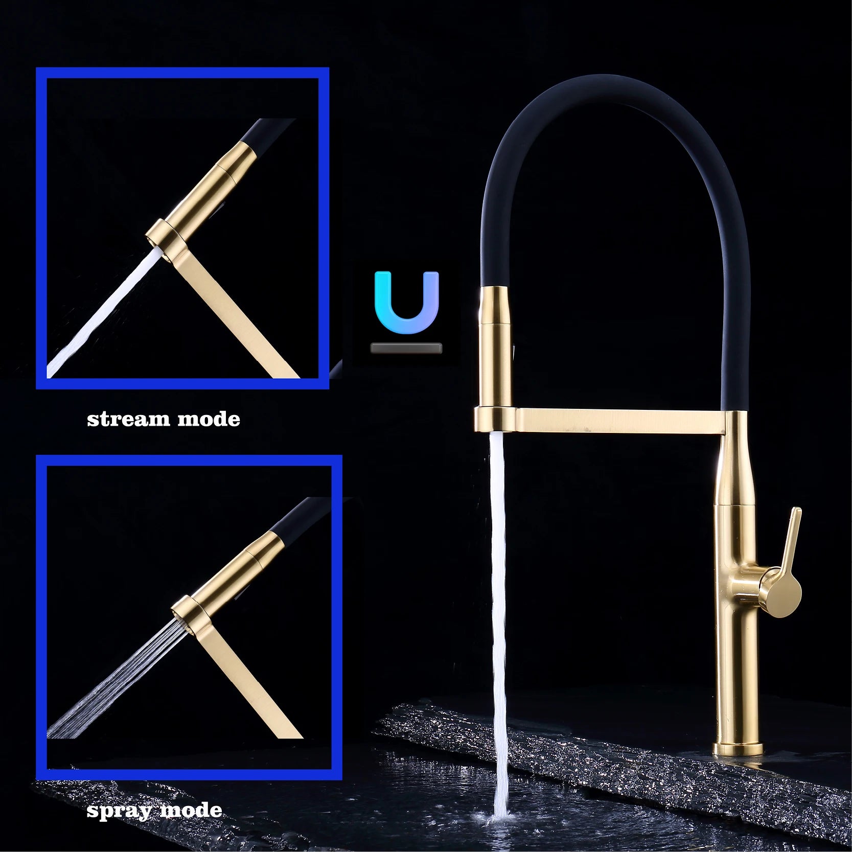 Luxury Brushed Gold Brass Pull Out Kitchen Faucet with Ceramic Cartridge Hot Cold Water Sink Tap Modern High End Sprayer Durable