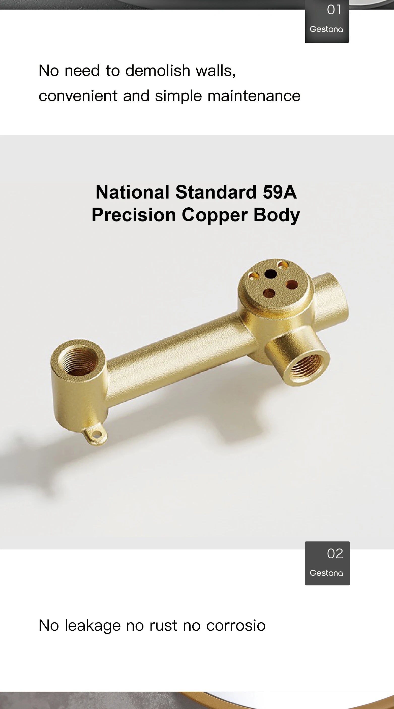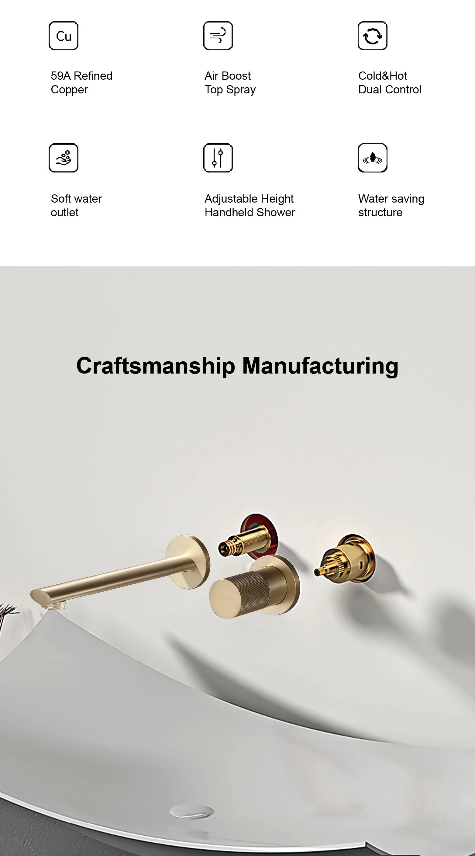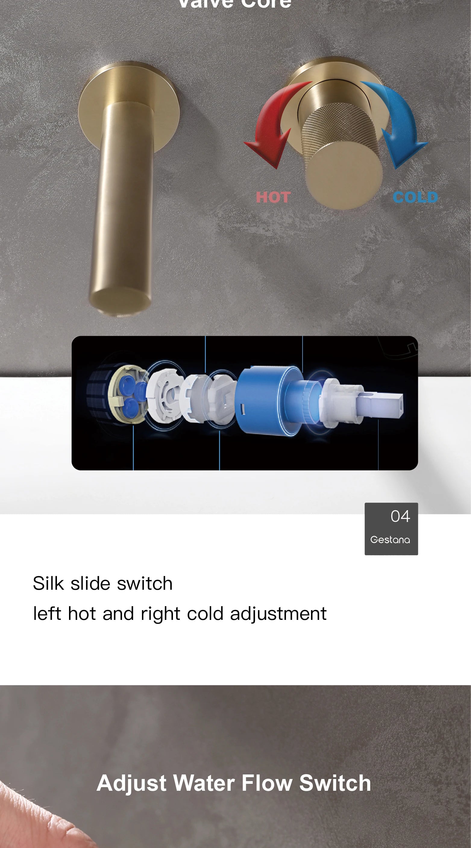 Luxury brushed gold brass wall mounted adjustable water volume bathroom faucet Embedded design for hot and cold water basin Tap