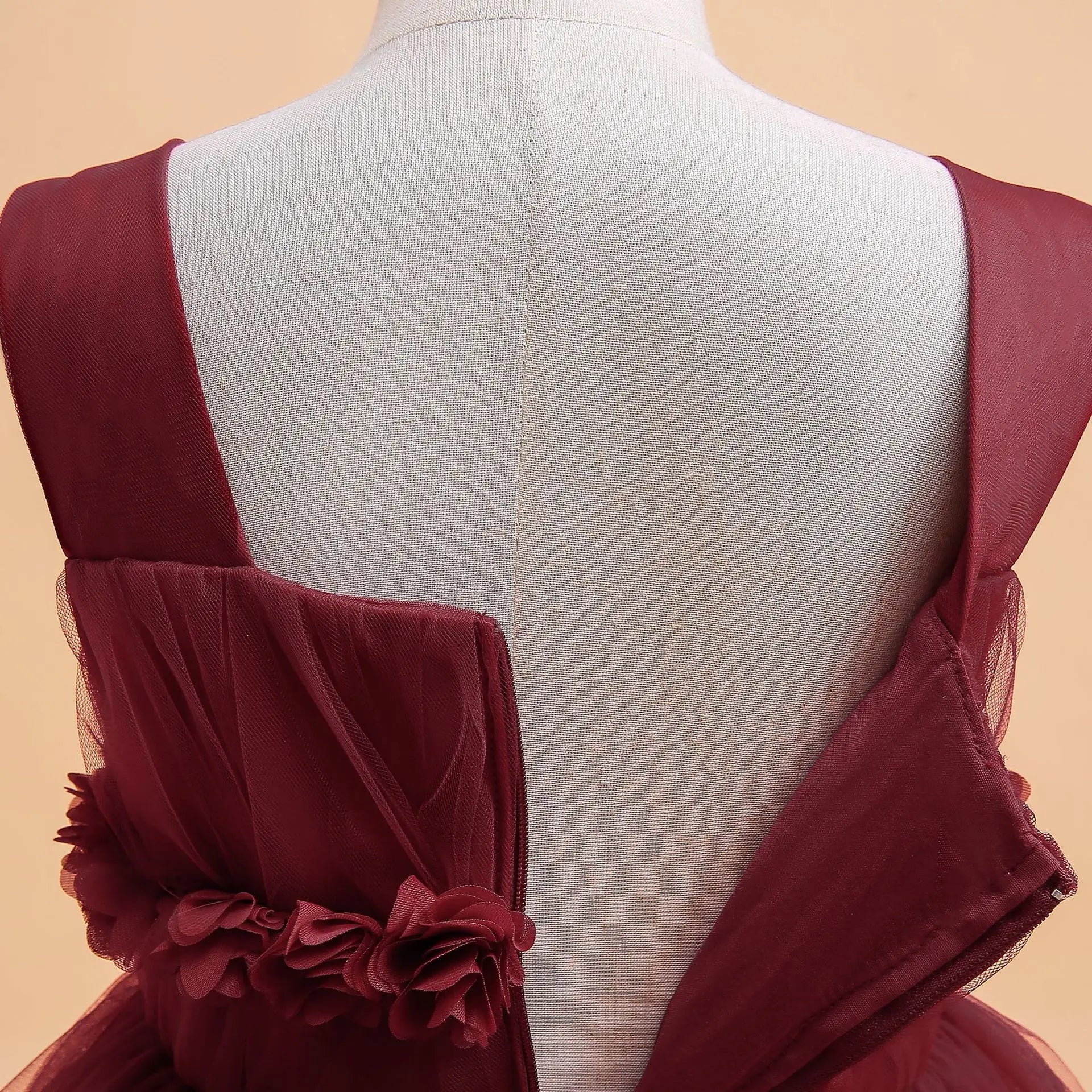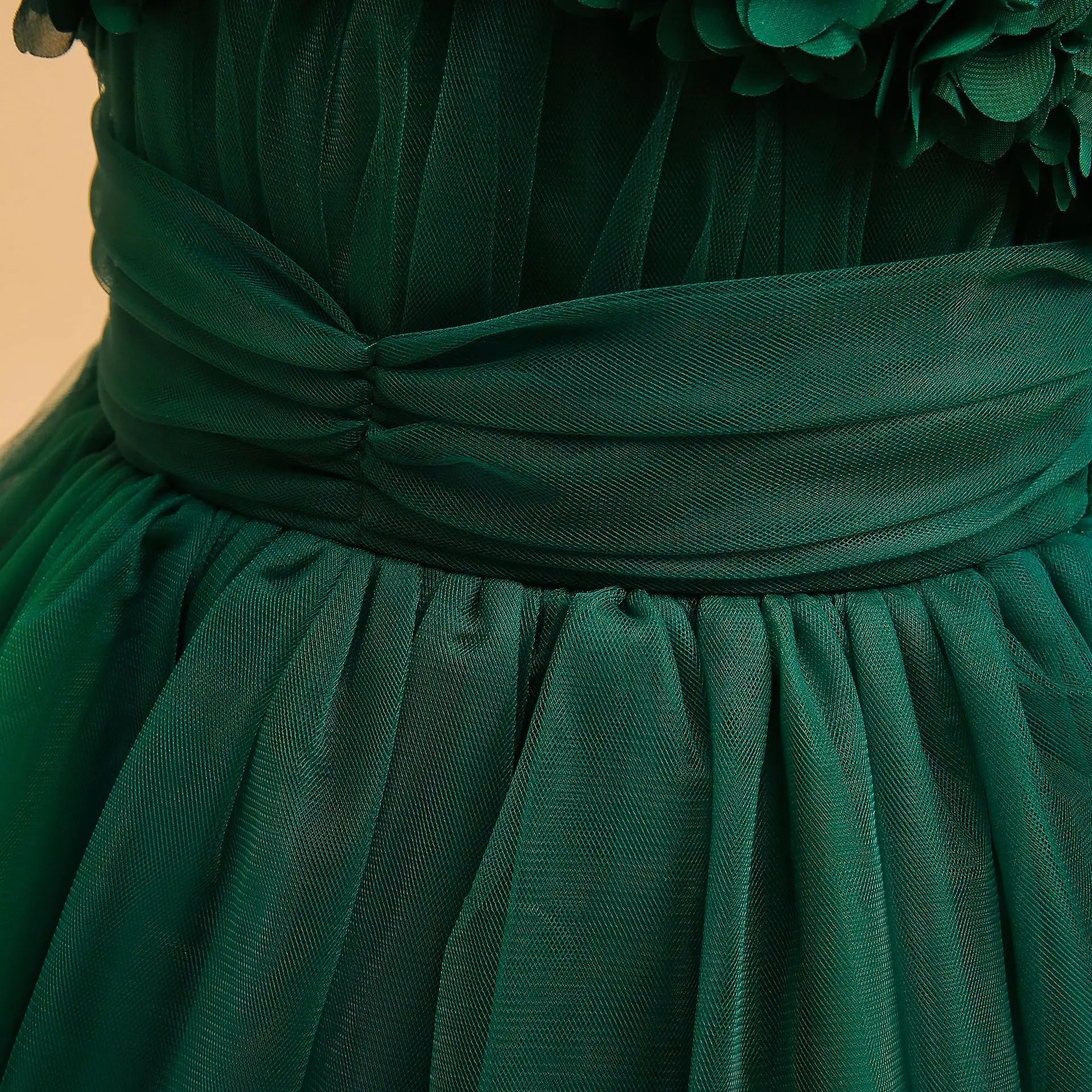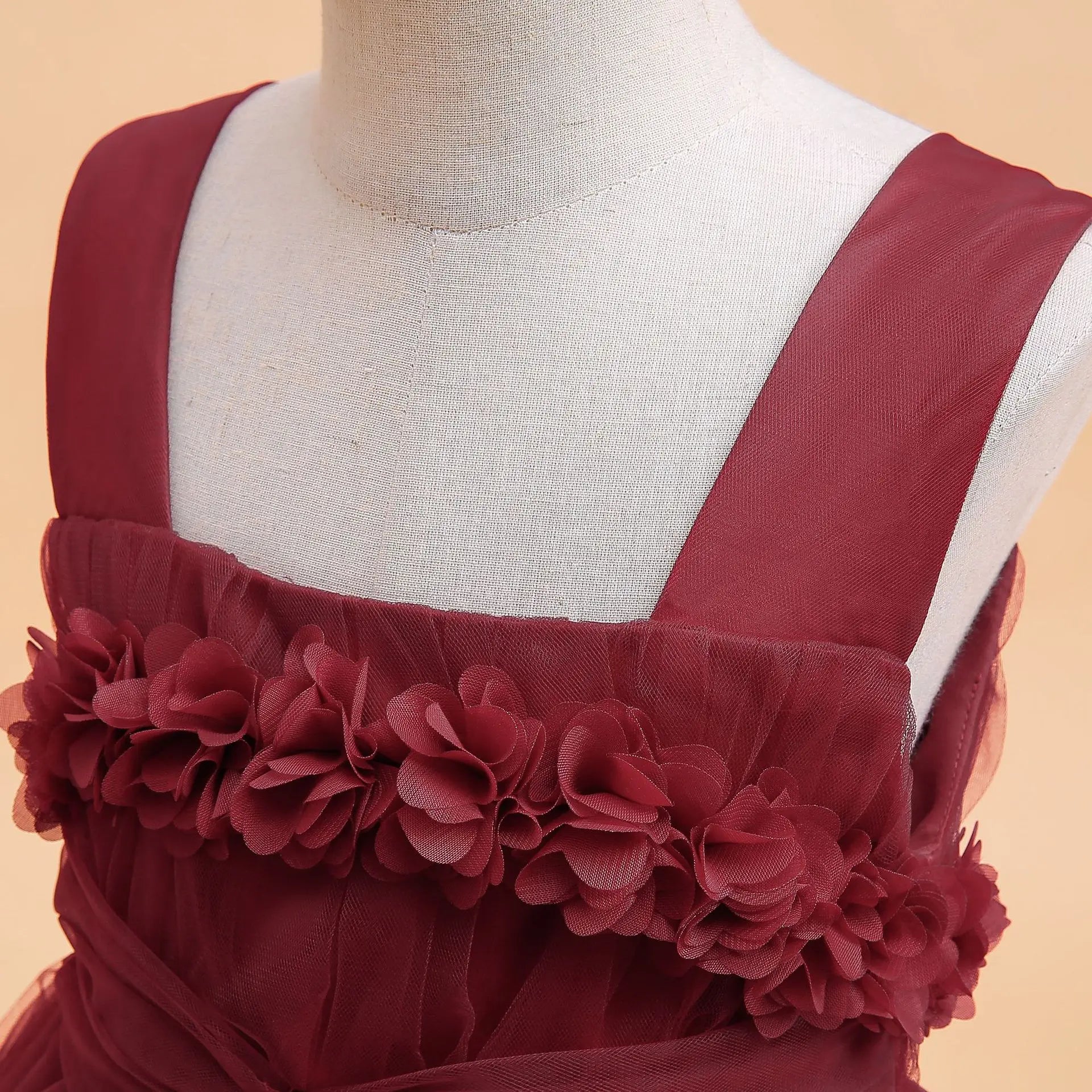 Mädchen Partykleider Weiß Langes Hochzeit Brautjungfer Prinzessin Kleid Abend Tüllkleid Abschlussball Klavier Performance Kleid