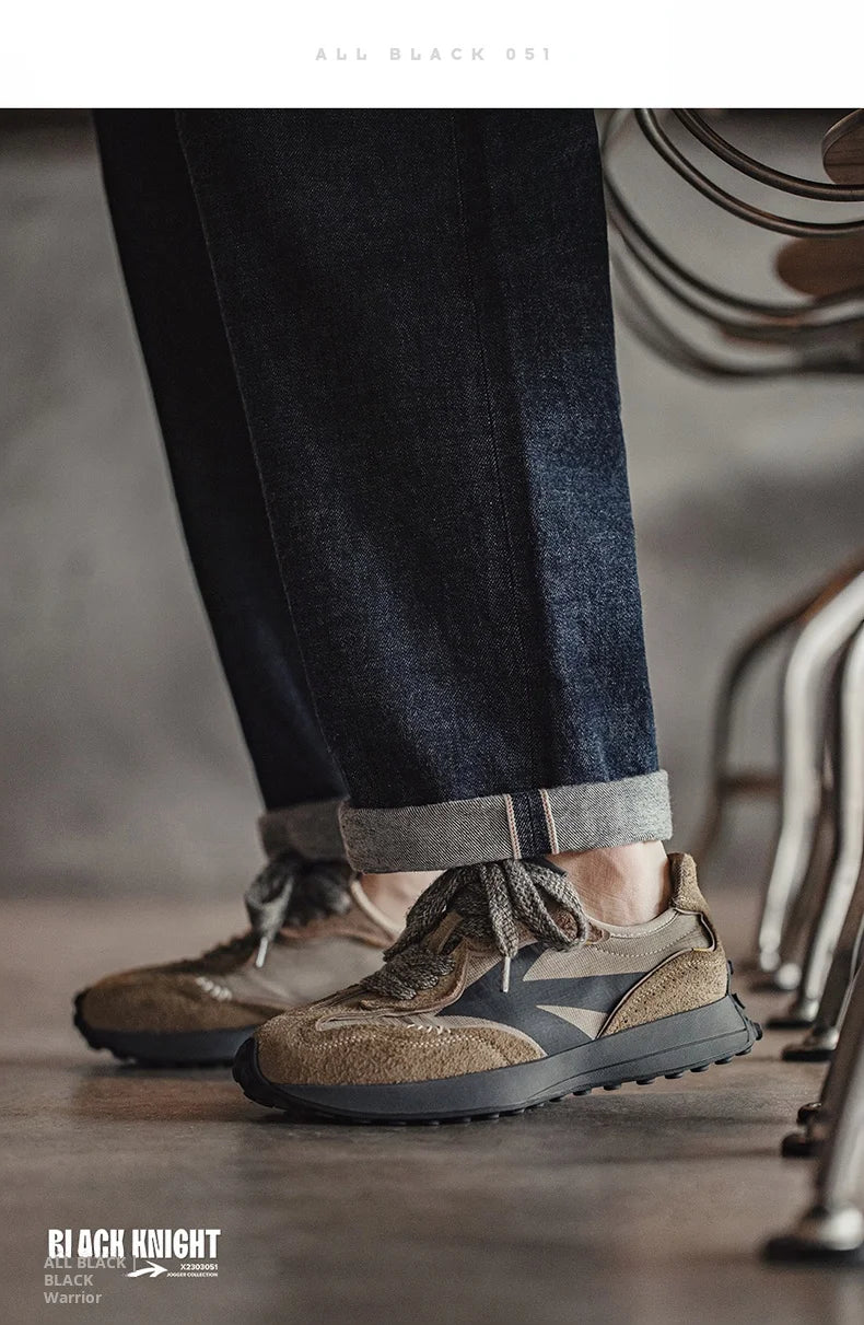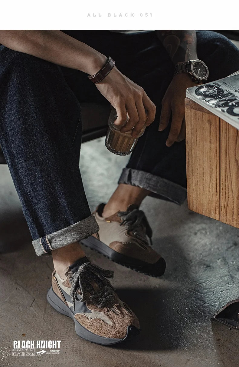 Maden Frühling Vintage Dickbesohlte Patchwork Schwarze Sneakers Lässige atmungsaktive Joggingschuhe Low-Top-Schnürschuhe Sportliche Sommerschuhe