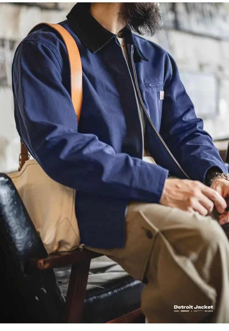 Maden Men's Retro J001 Detroit Jacket Heavyweight Canvas Hunting Coat Lapel Collar Work Jackets with Zipper for Spring Fall