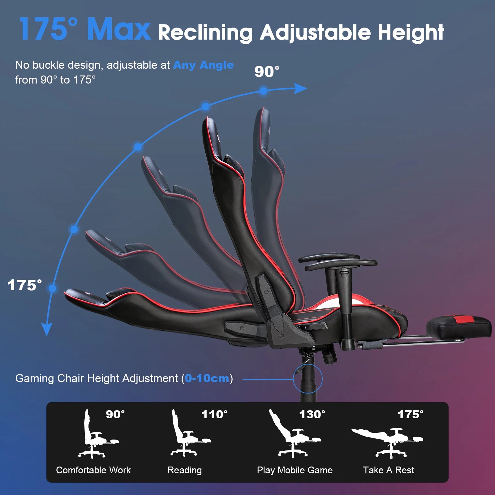 Massage-Gaming-Stuhl, 7-Punkt-Sitzhöhe, ergonomischer Bürostuhl mit Fußstütze und Lordosenstütze, GC-RC03 Stühle