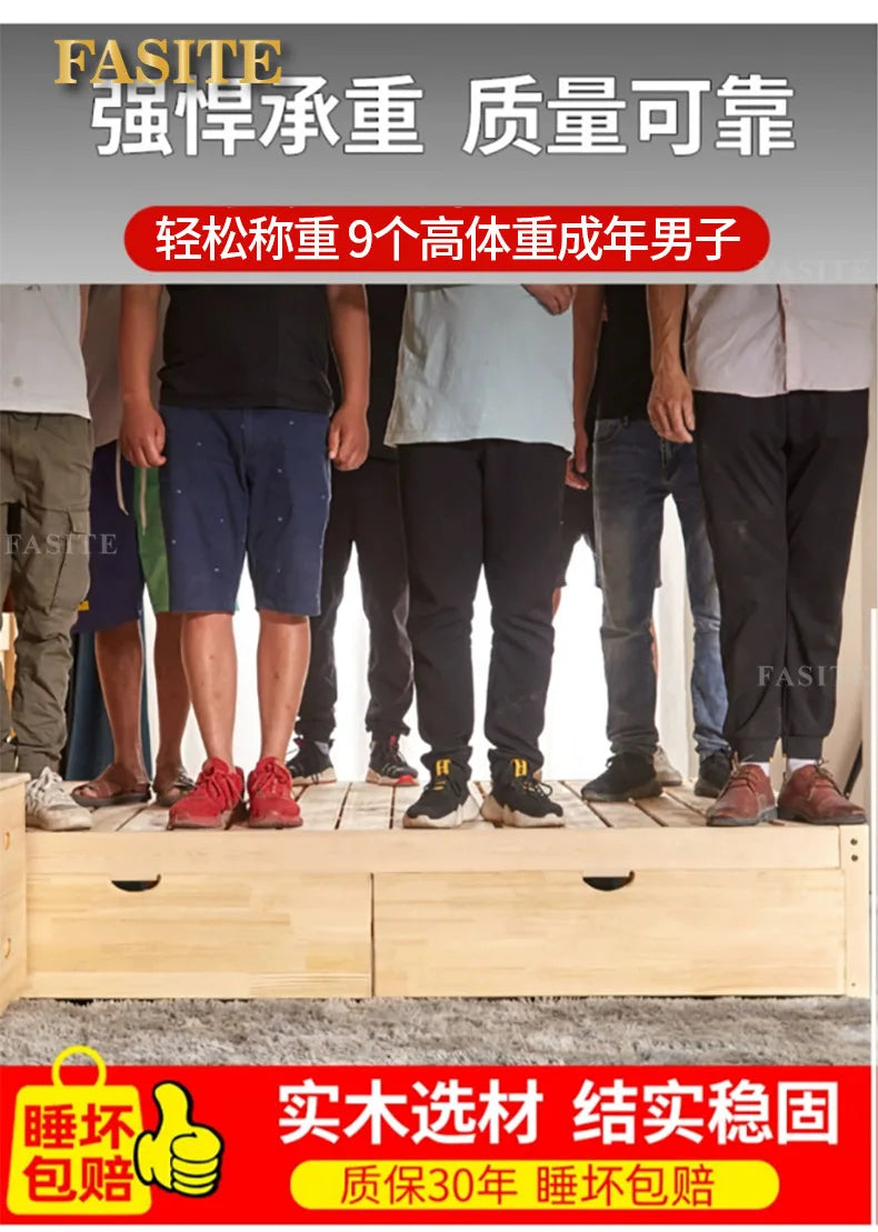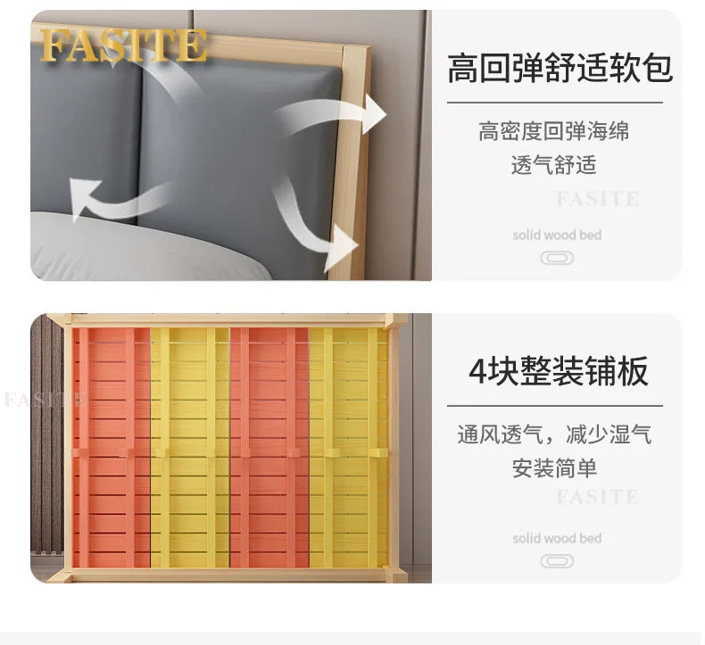 Massivholz Modernes einfaches 1,8 Meter Doppelbett Mietzimmer 1,2 Meter Einzelbett 1,5 Meter einfacher Bettrahmen