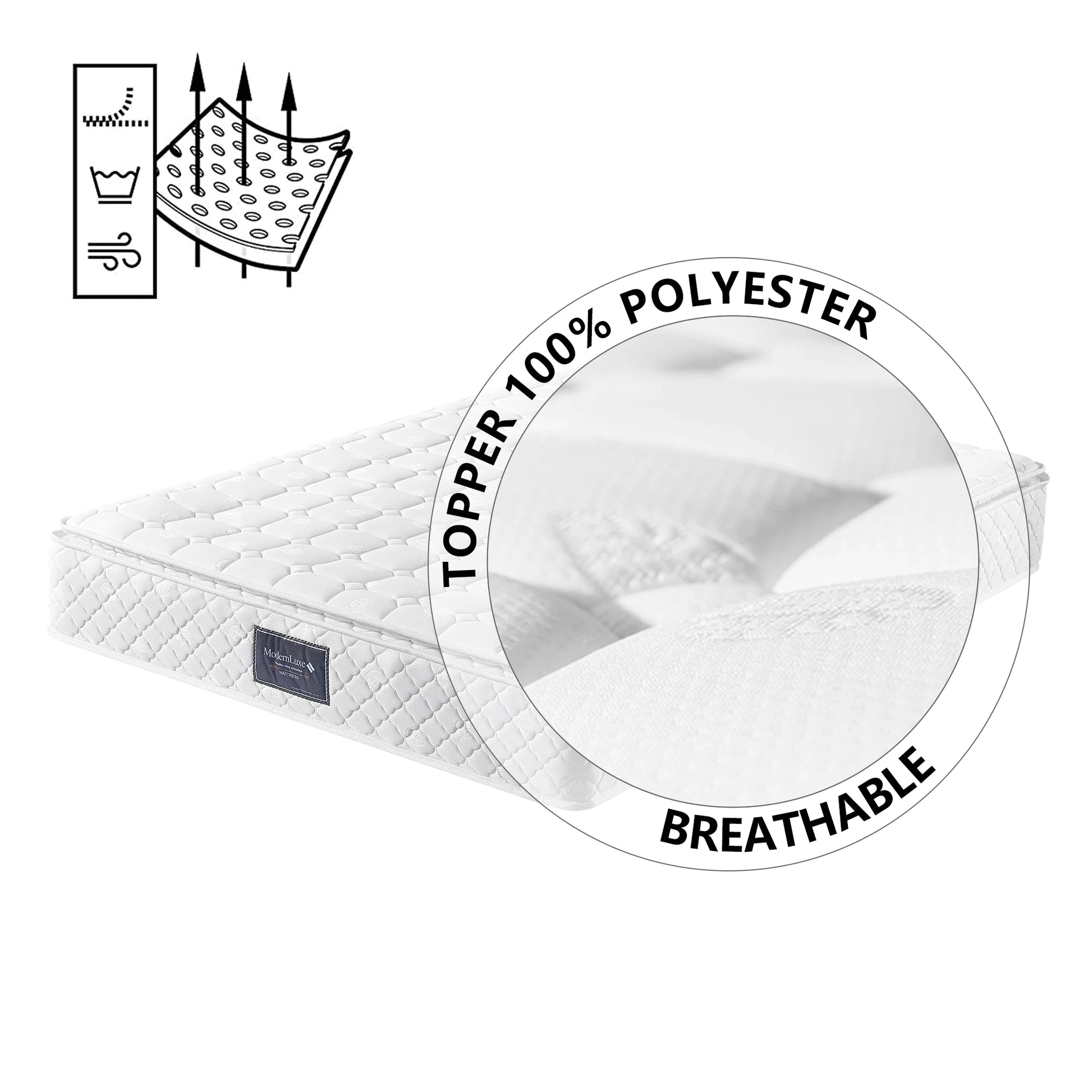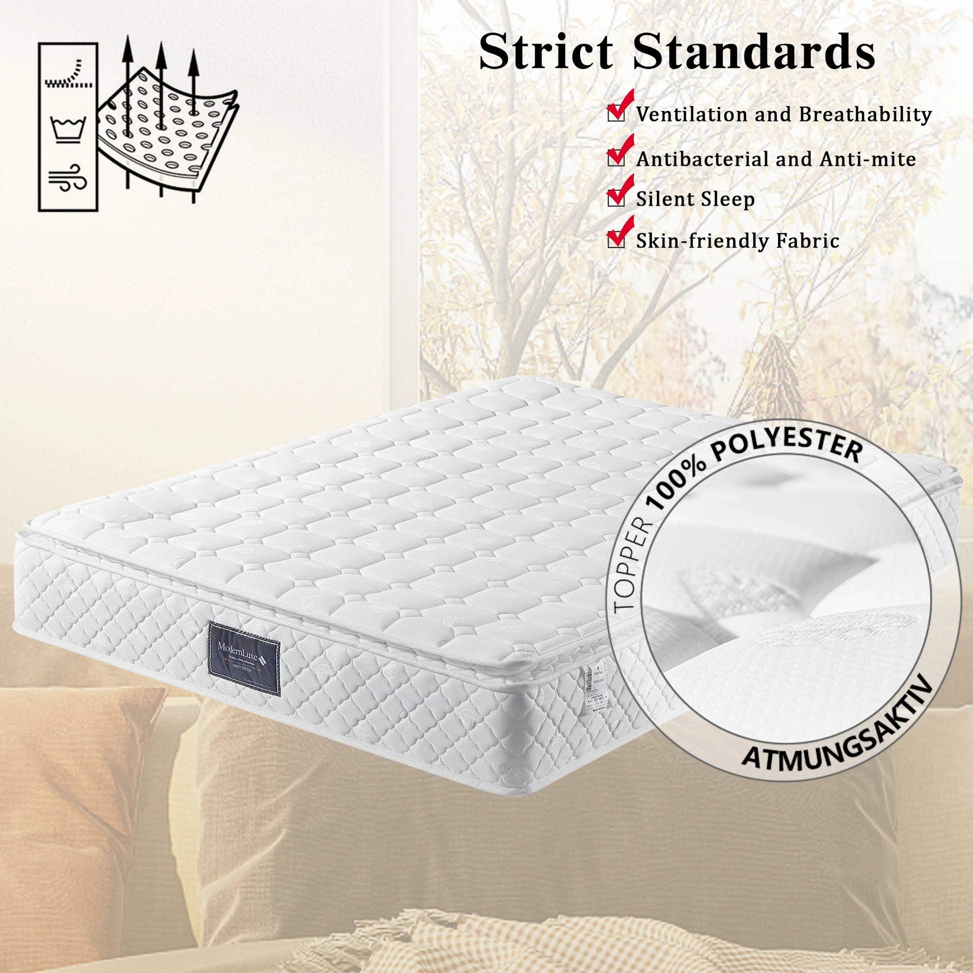 matratzen 140x200 90x200 160x200cm 7 Zonen Kaltschaum Matratze, Taschenfederker, Härtegrad H3, 25cm Höhe,versteppter Mikrofaserbezug-Topping