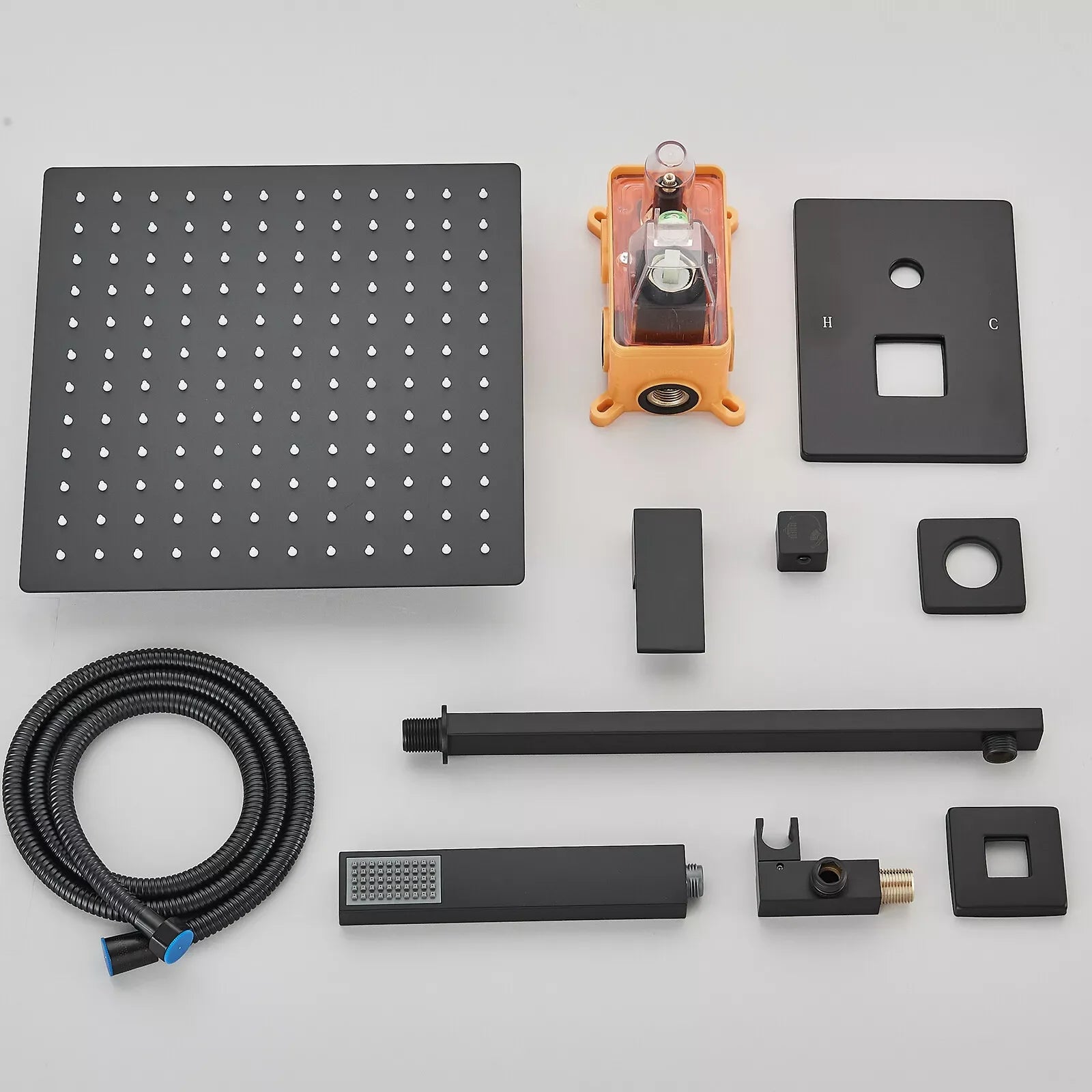 Matte Black Wall Mount Bathroom Shower Faucet 8/10/12/16 Inch Rainfall Mixed Hot Cold Water Mixer Bathtub Tap with Hand Sprayer