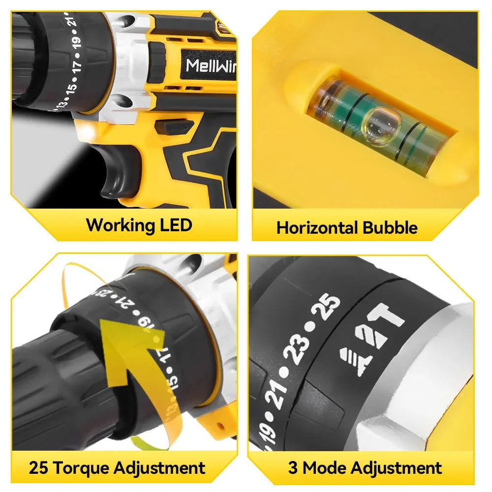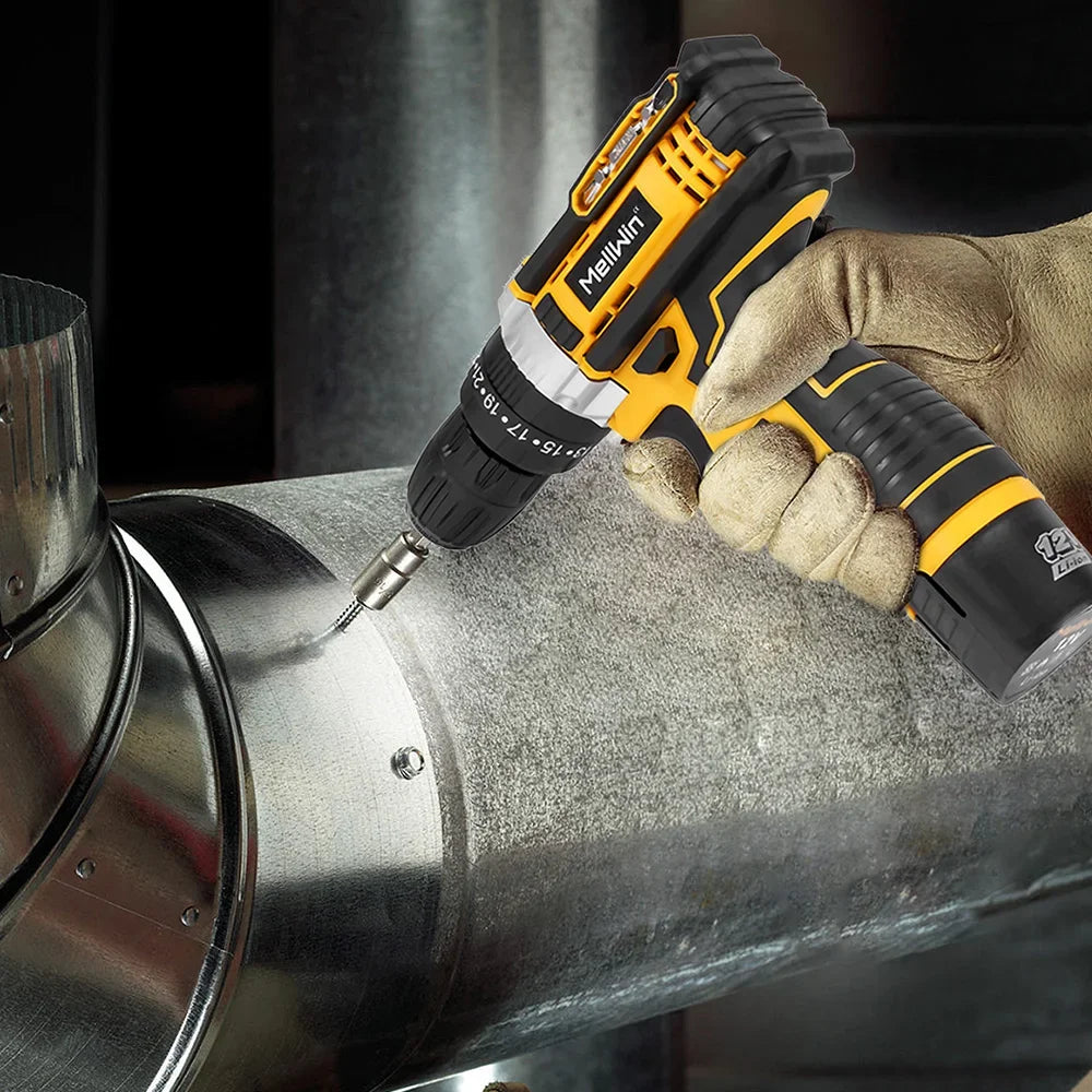 MELLWIN 25 + 3 Drehmoment elektrische Bohrmaschine 12 V Akku-Bohrschrauber Elektroschrauber 2 Gang Geschwindigkeit einstellbar Mini-Elektro-Treiber-Werkzeugsatz