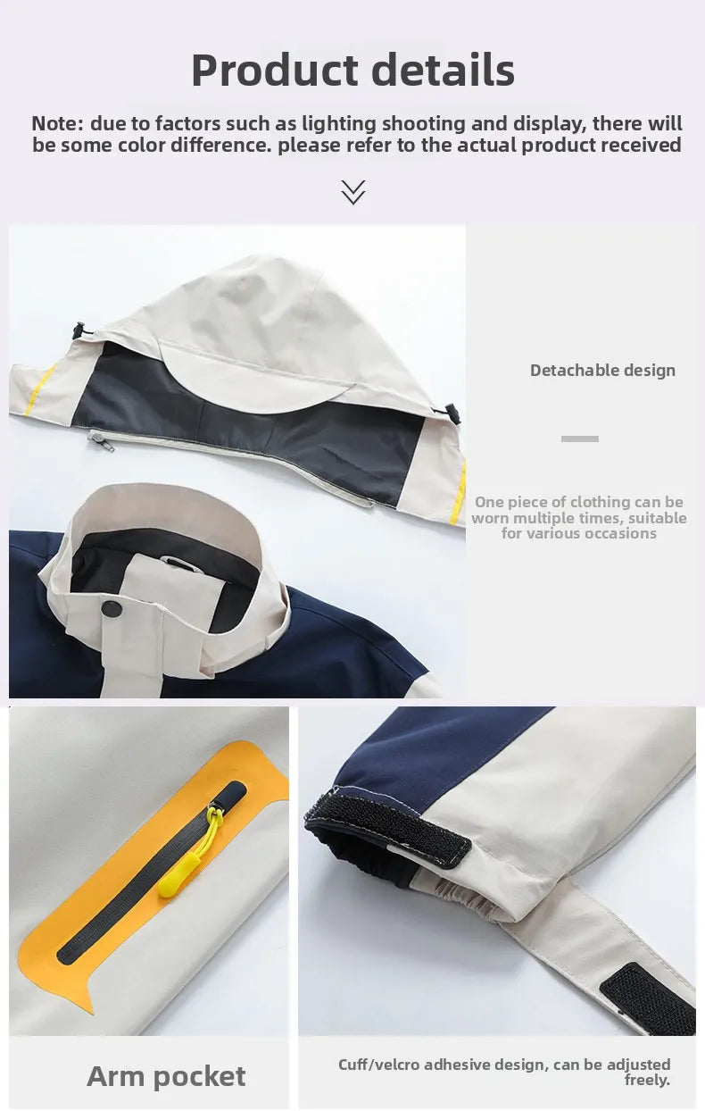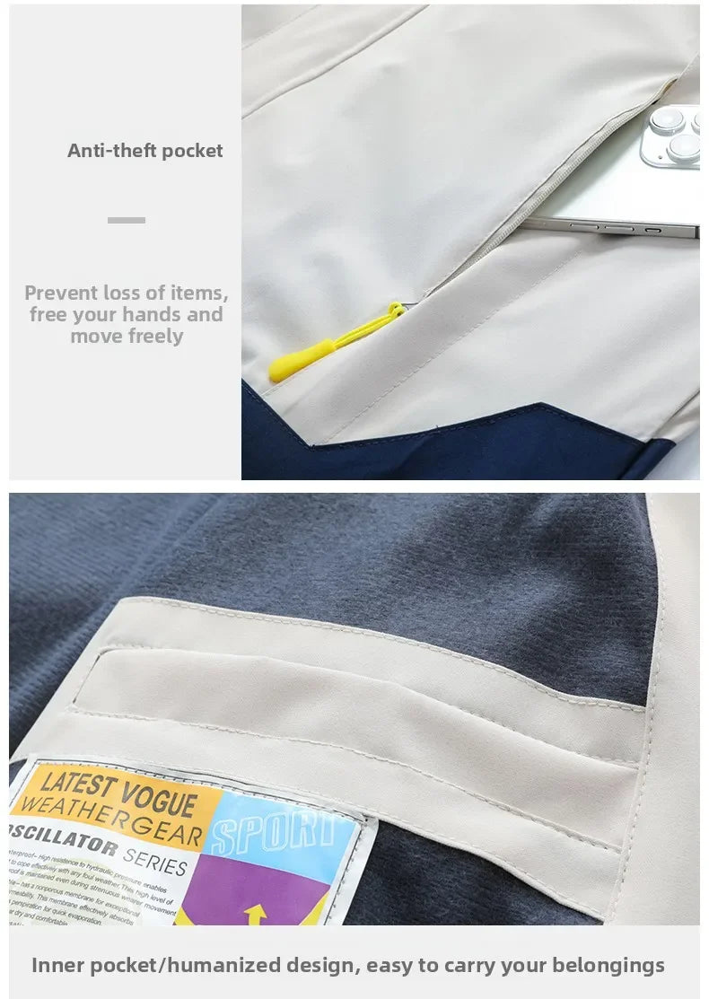 Men's Single-layer Hiking Jacket Patchwork Hooded Hiking Coat Men Color Block Windbreaker Jackets Outdoor Mountaineering Coats