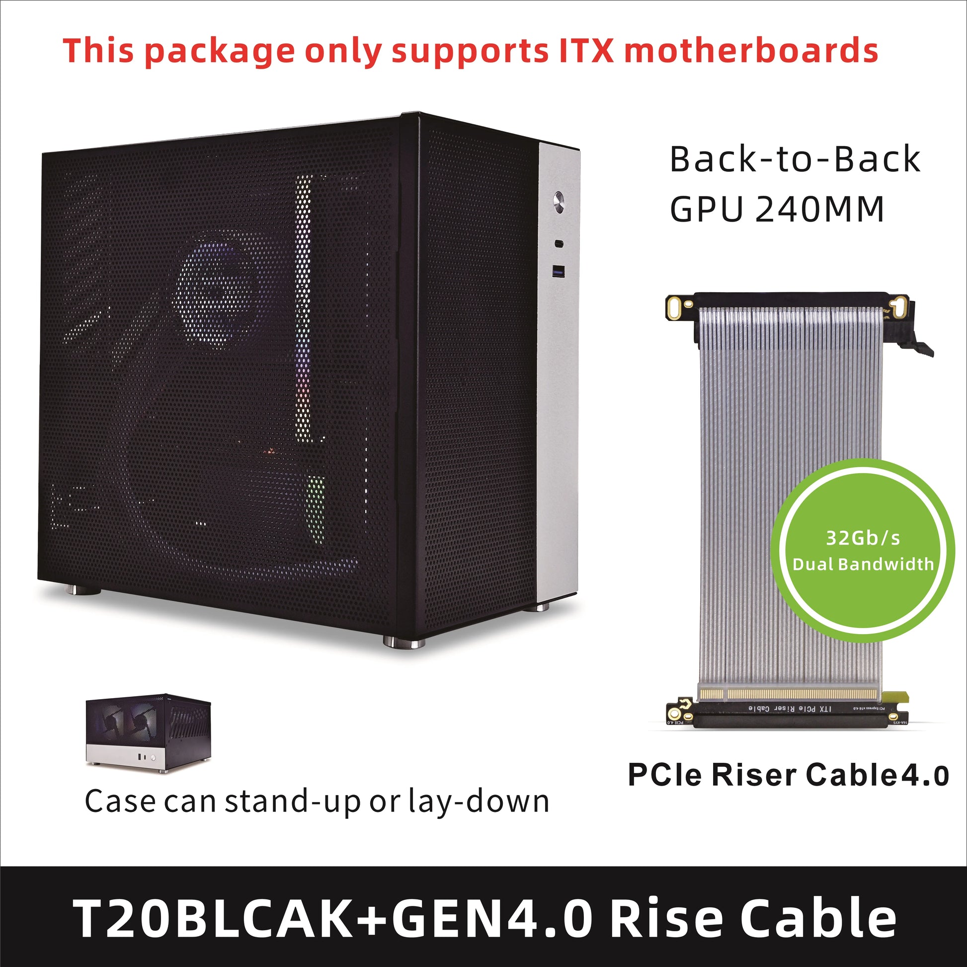 METALFISH T20 Mini ITX Case 9L Gaming Computer White Chassis Compact PC Support Flex PSU/100mm Cooler/180Liquid Cooler/240mm GPU