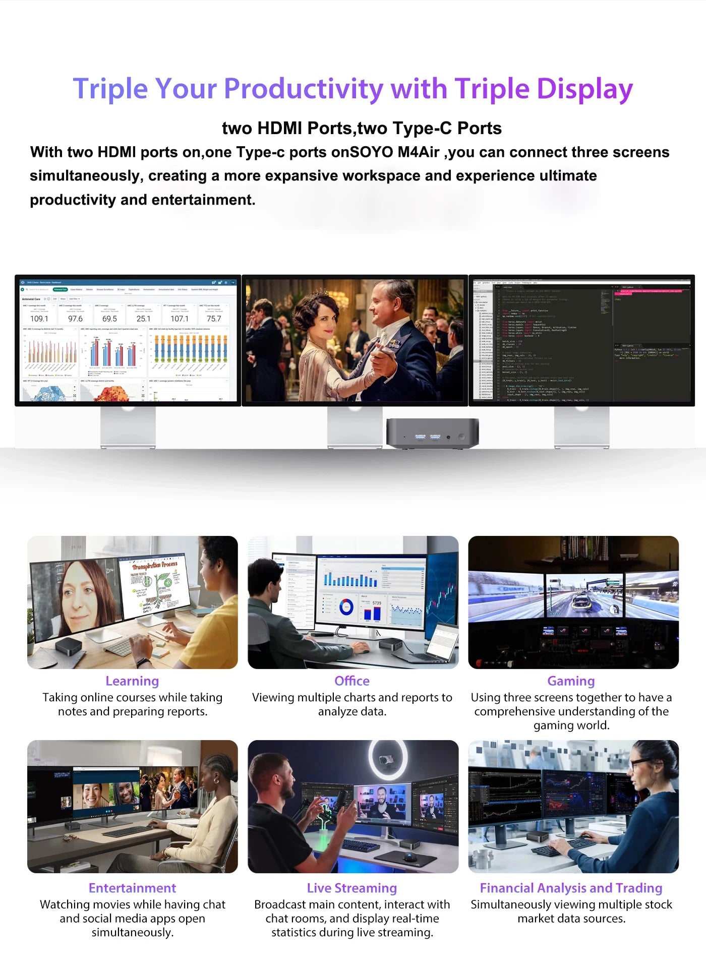 Mini PC SOYO M4 Air Intel Alder Lake N95 MiniPC Computer PC Win11 Pro Mini PC DDR4 16GB RAM 512GB ROM WiFi5 BT5.0 Desktop