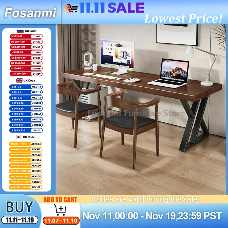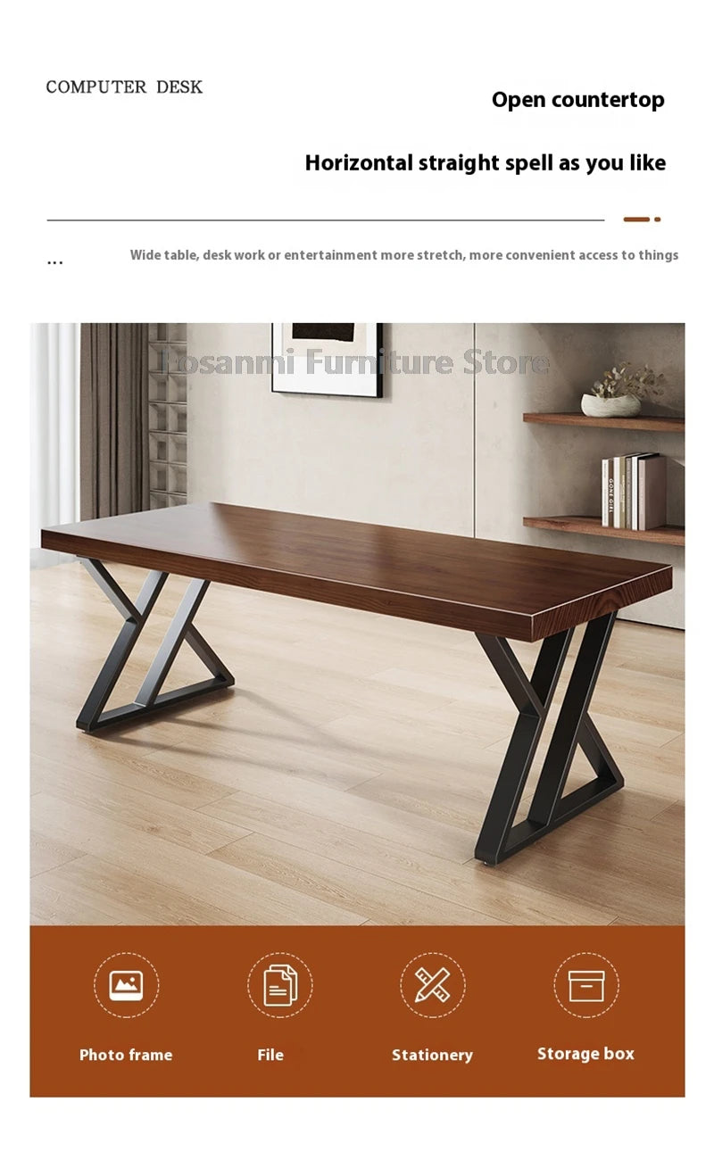 Minimalistischer langer Massivholztisch für das Heimbüro, große Arbeit, Gaming, Arbeitszimmer, Schreibtische für zwei elegante Räume, Computertisch mit Stahlbeinen