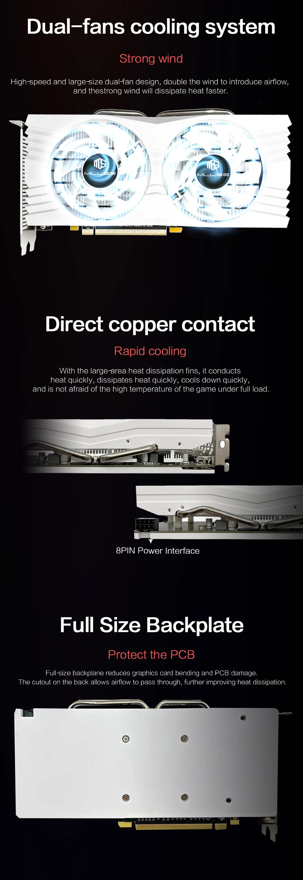 MLLSE AMD RX 580 8GB 2048SP Gaming Graphics Card GDDR5 256Bit PCI-E 3.0 ×16 8Pin Radeon GPU Rx 580 Video Card Placa De Video