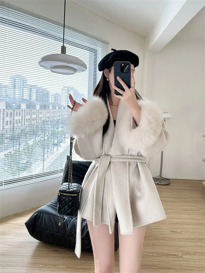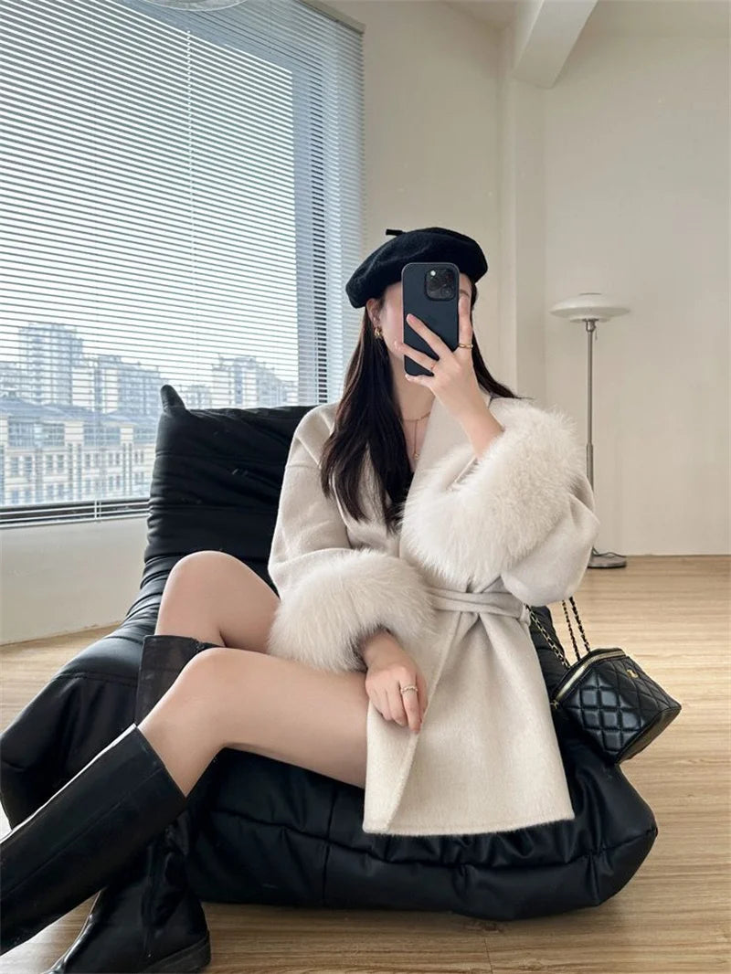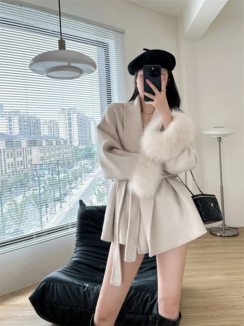 Mode Wolle Jacke mit Gürtel Frauen Mantel 2025 Neue Herbst Winter Temperament Lose Strickjacke Weibliche Outwear