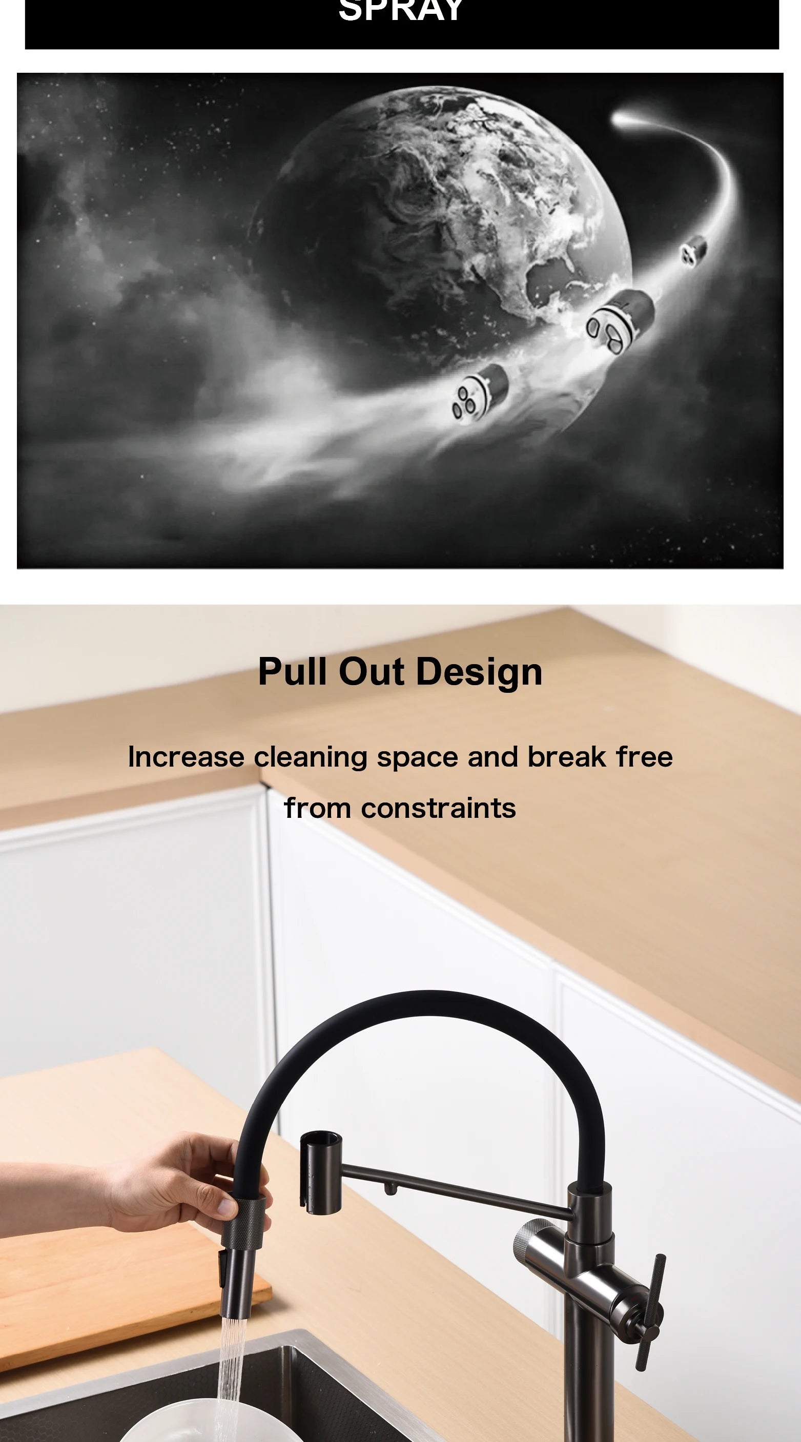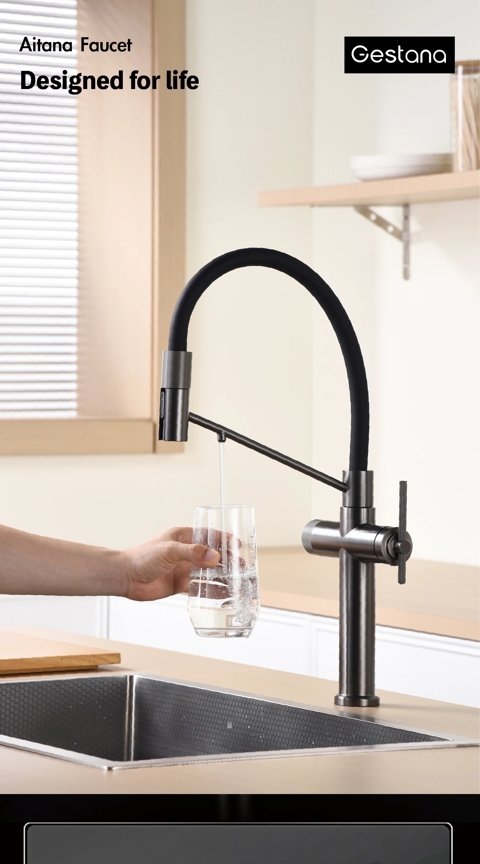 Modern chrome brass pull-out hot and cold water single hole kitchen faucet luxury 2 function drinking water mode sink faucet