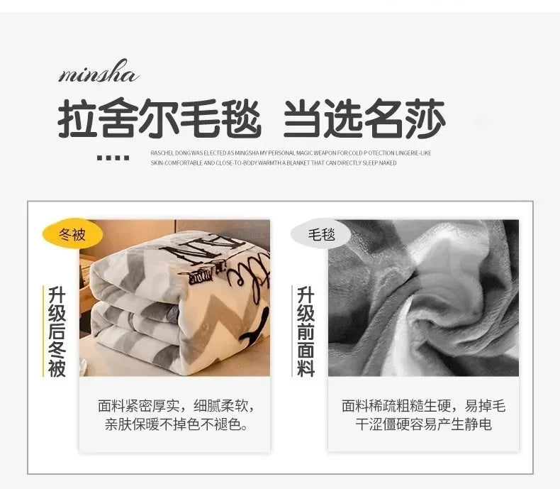 Modern Geometric Cartoon Printed Bedroom Blanket Coral Fleece Dormitory Quilt Thicking Double Layer Multi Purpose Bedding Sheets