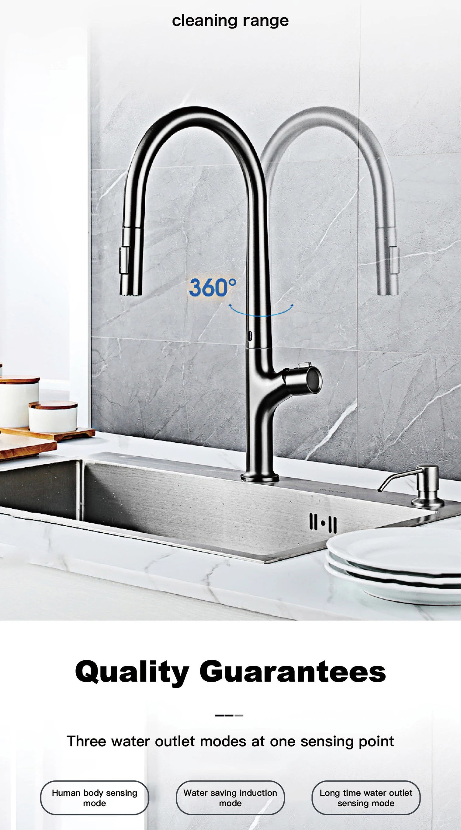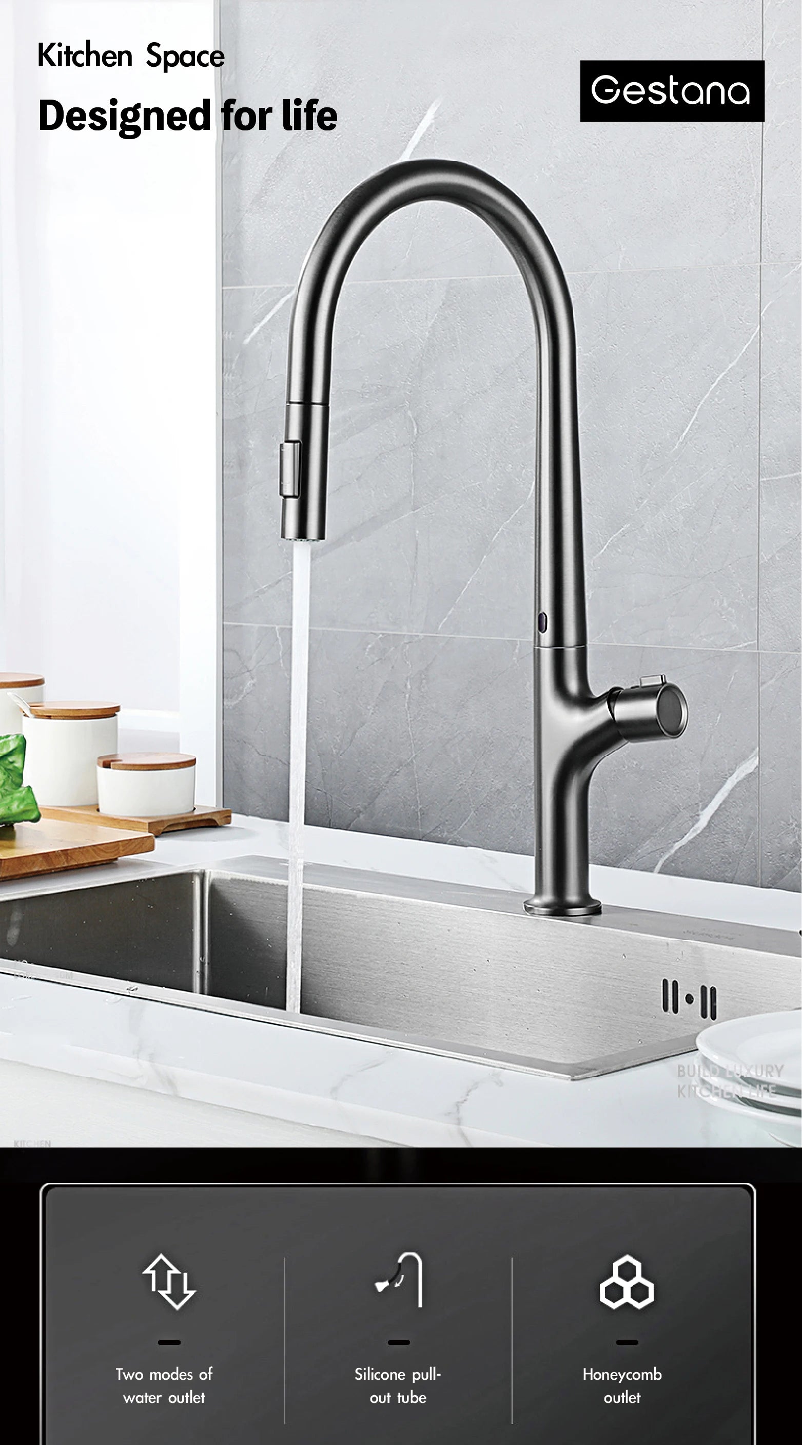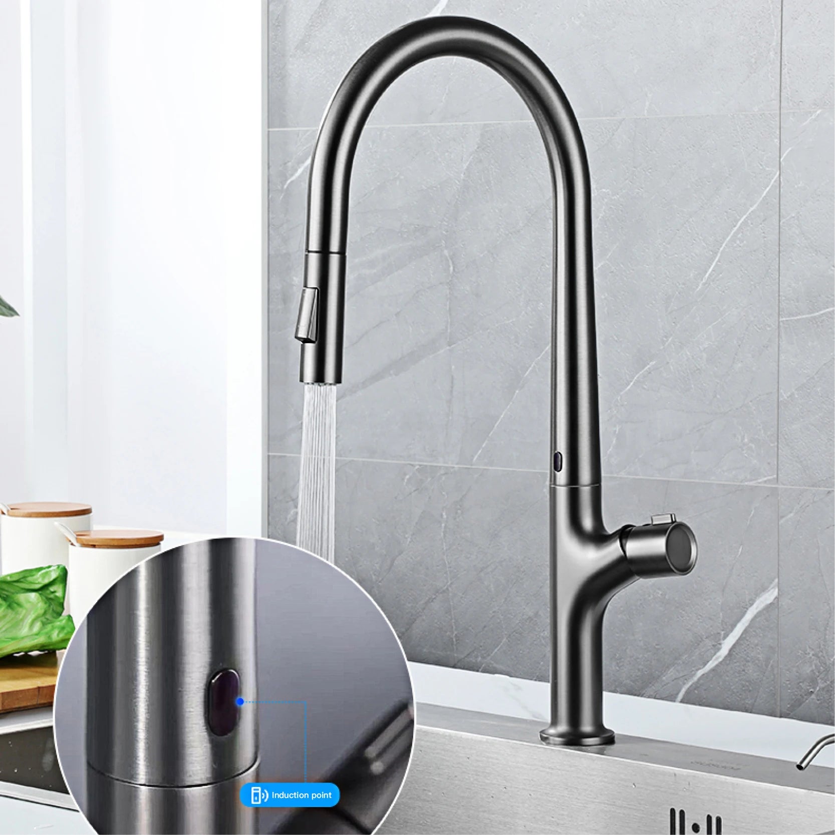 Modern style gun gray pull-out kitchen faucet with 1 handle for hot&cold water intelligent sensing and 2 functions for sink Tap