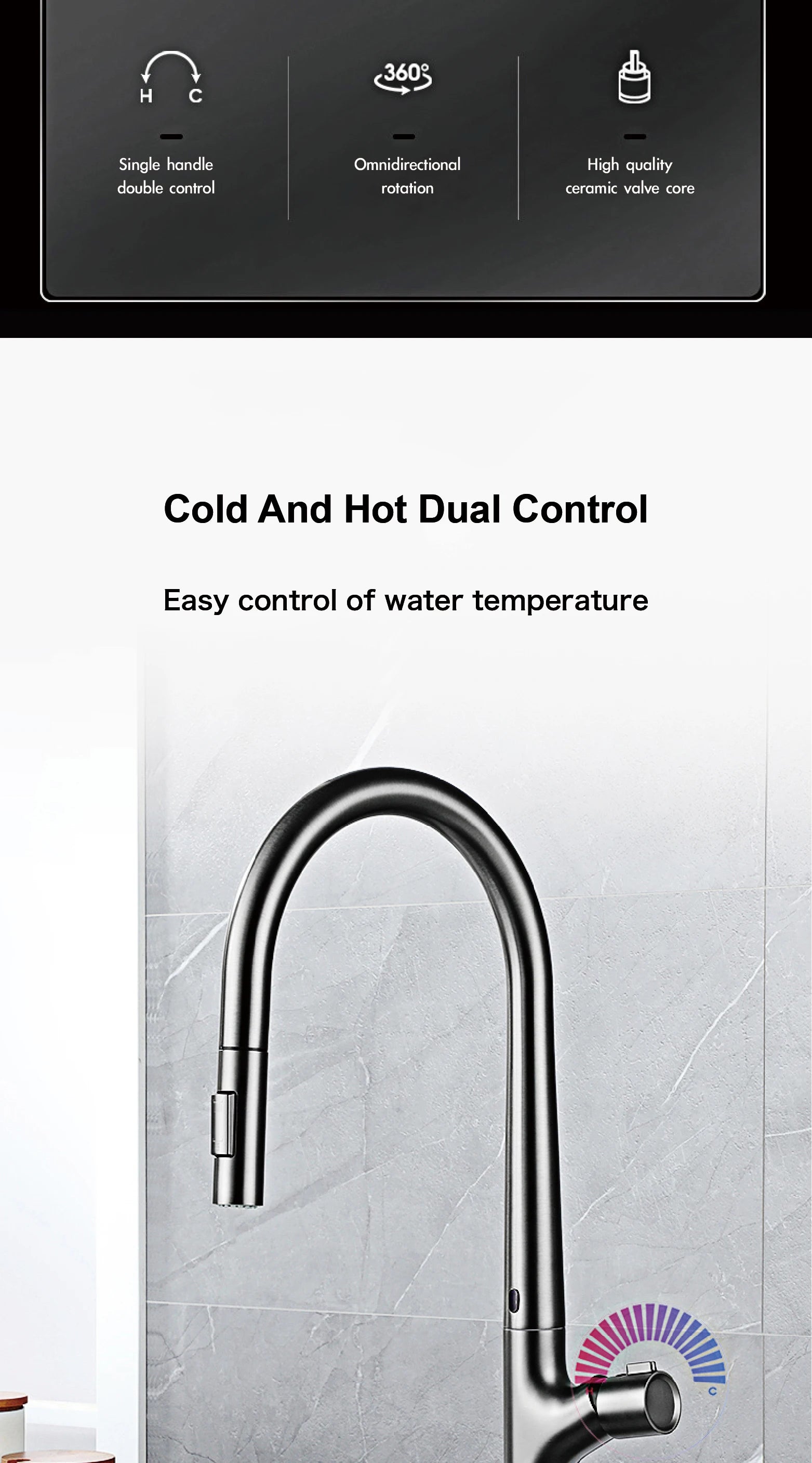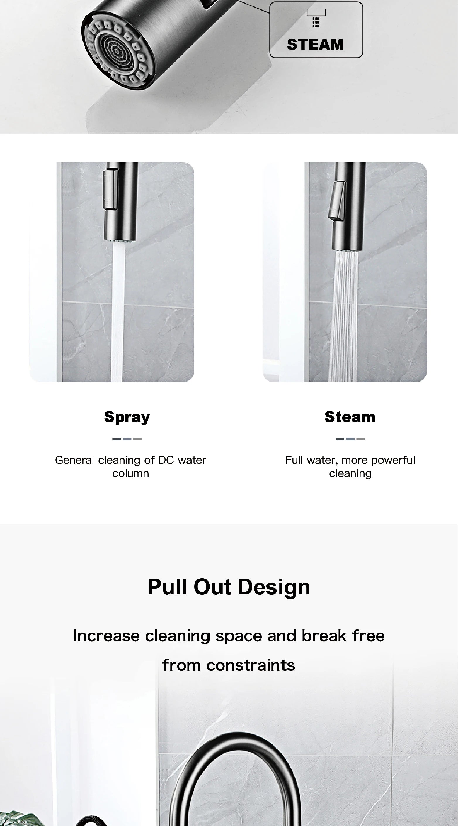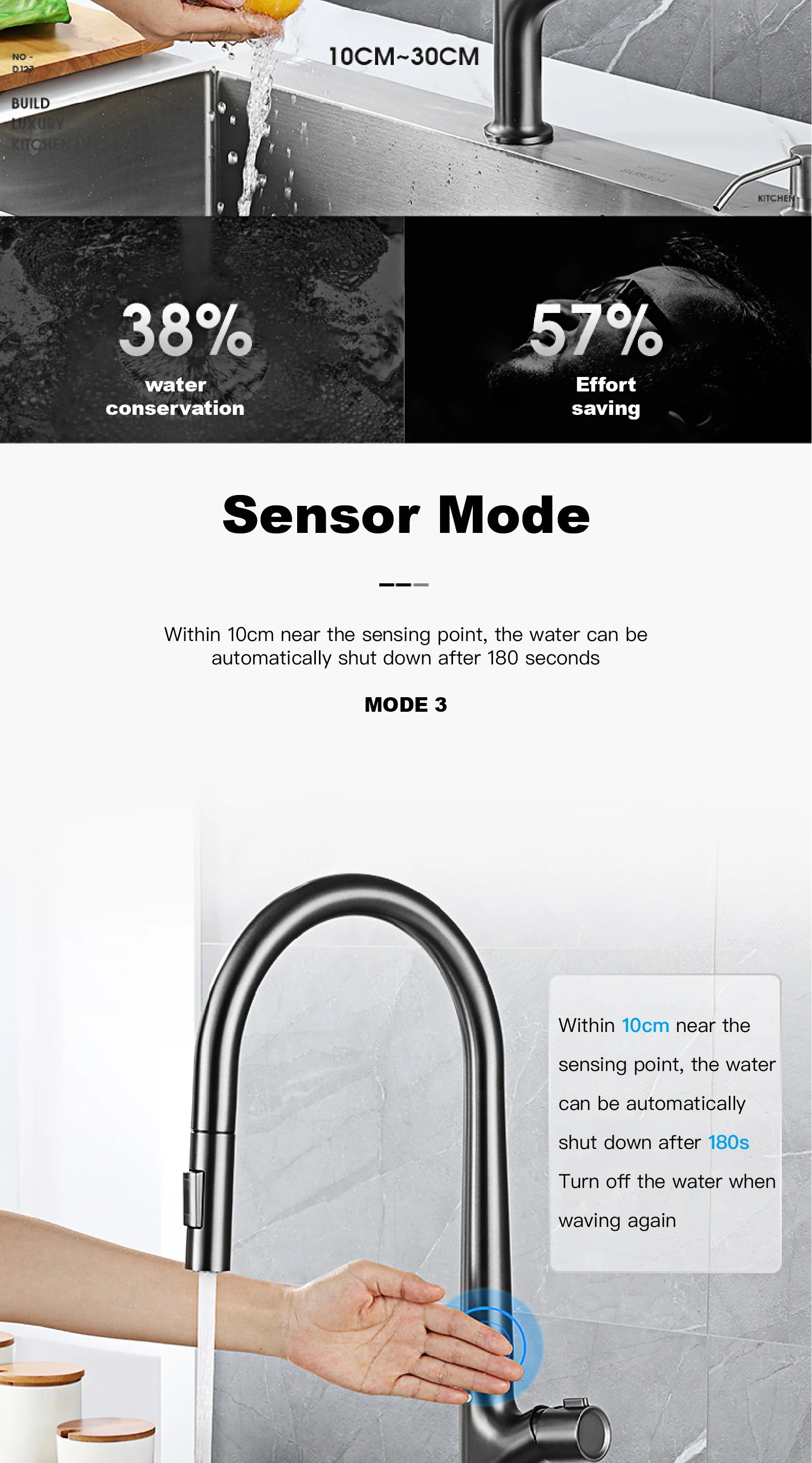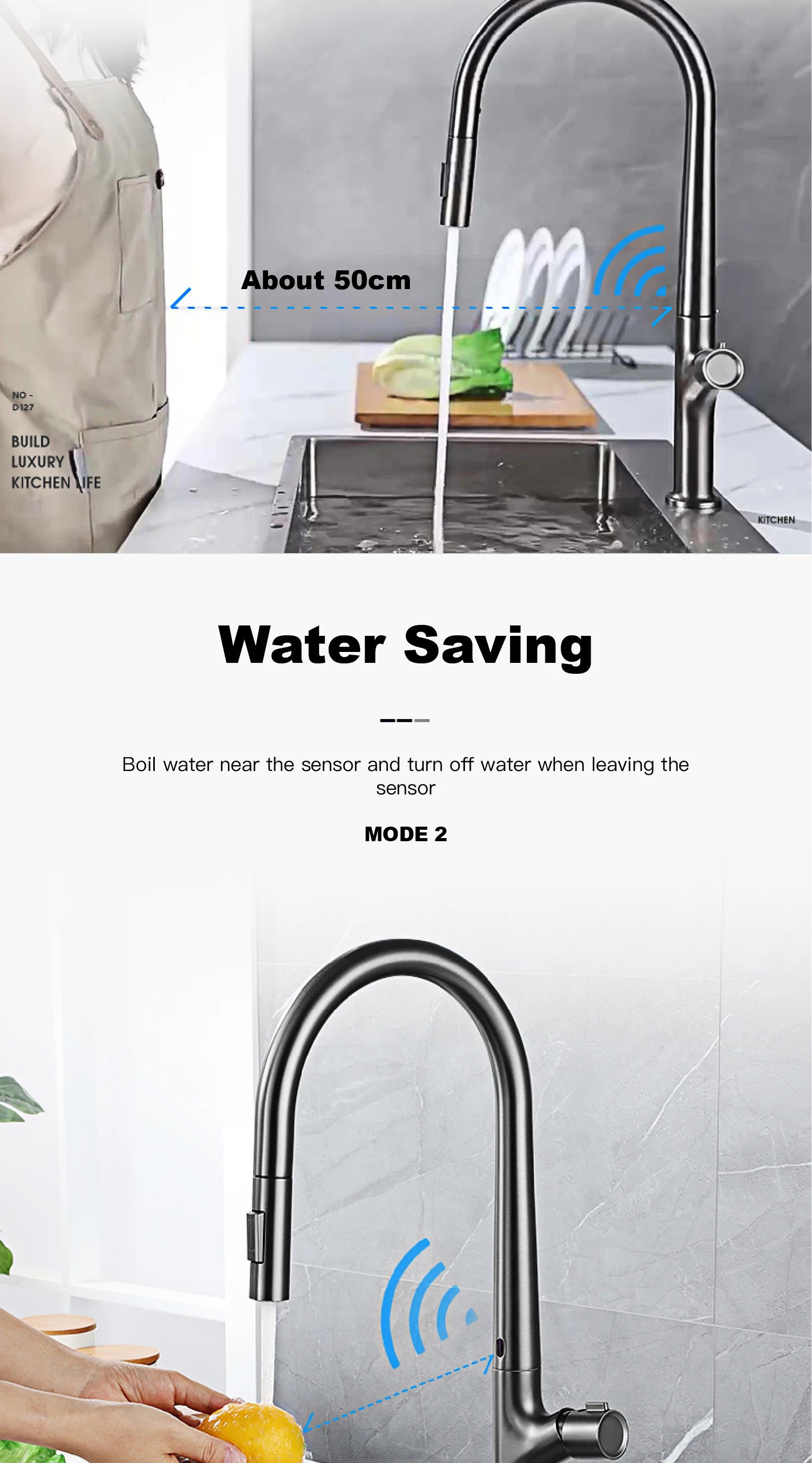 Modern style gun gray pull-out kitchen faucet with 1 handle for hot&cold water intelligent sensing and 2 functions for sink Tap