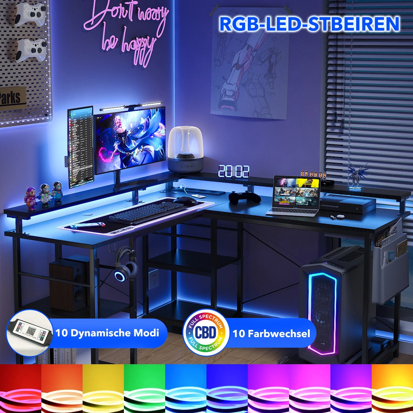 Moderner L-Schreibtisch, 2 in 1 Umwandelbar, 140/230cm, mit ergonomischer Monitortisch-Aufsatz, Power Hub, Gaming-Tisch