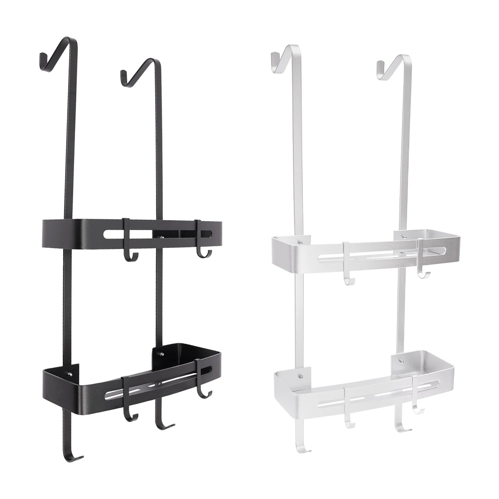 Modernes 2-stufiges Badezimmerregal in Silber/Schwarz, an der Tür montiertes Lagerregal, geeignet für Badezimmer, Küche, Wohnzimmer, Balkon