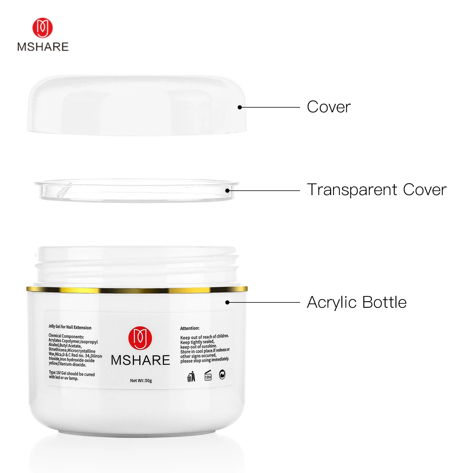 MSHARE 50g/250g Shimmer Pink White Acrylic Gel TPO Free Glitter Shiny Extension Acryl Hard Gel Nails Sculpting Construction
