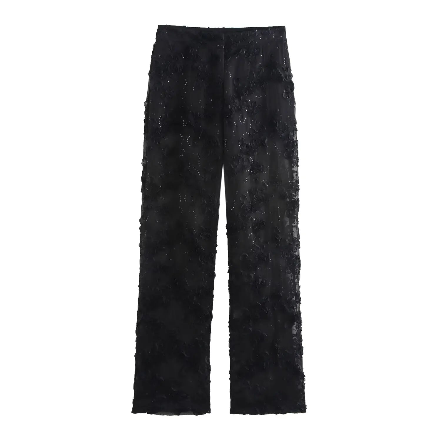MUJER Sequin Pants Sets for Women 2 Pieces Flower Women's Pants Blazer Suits 2 Pieces Sets Women Outfit Semi Sheer Trousers Sets